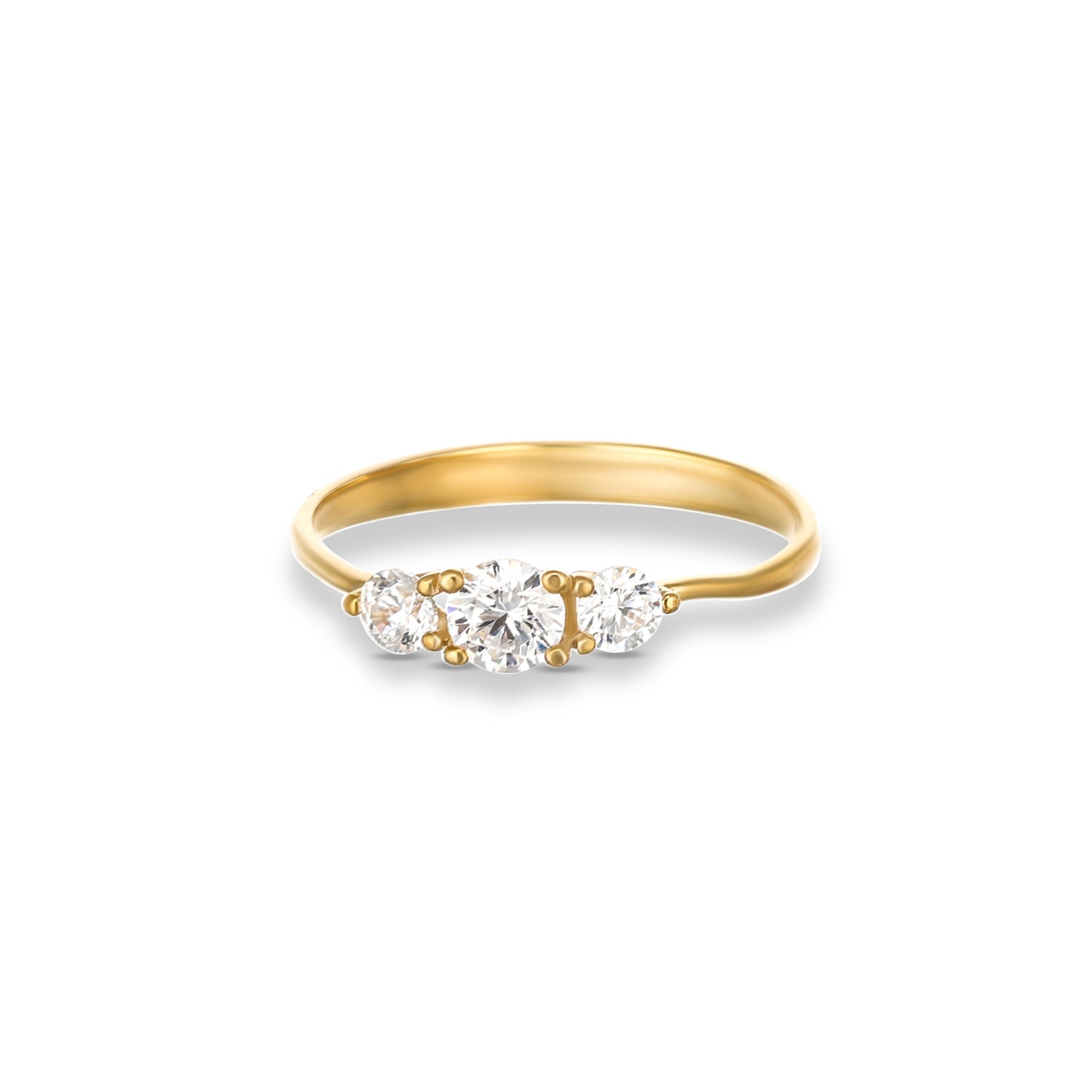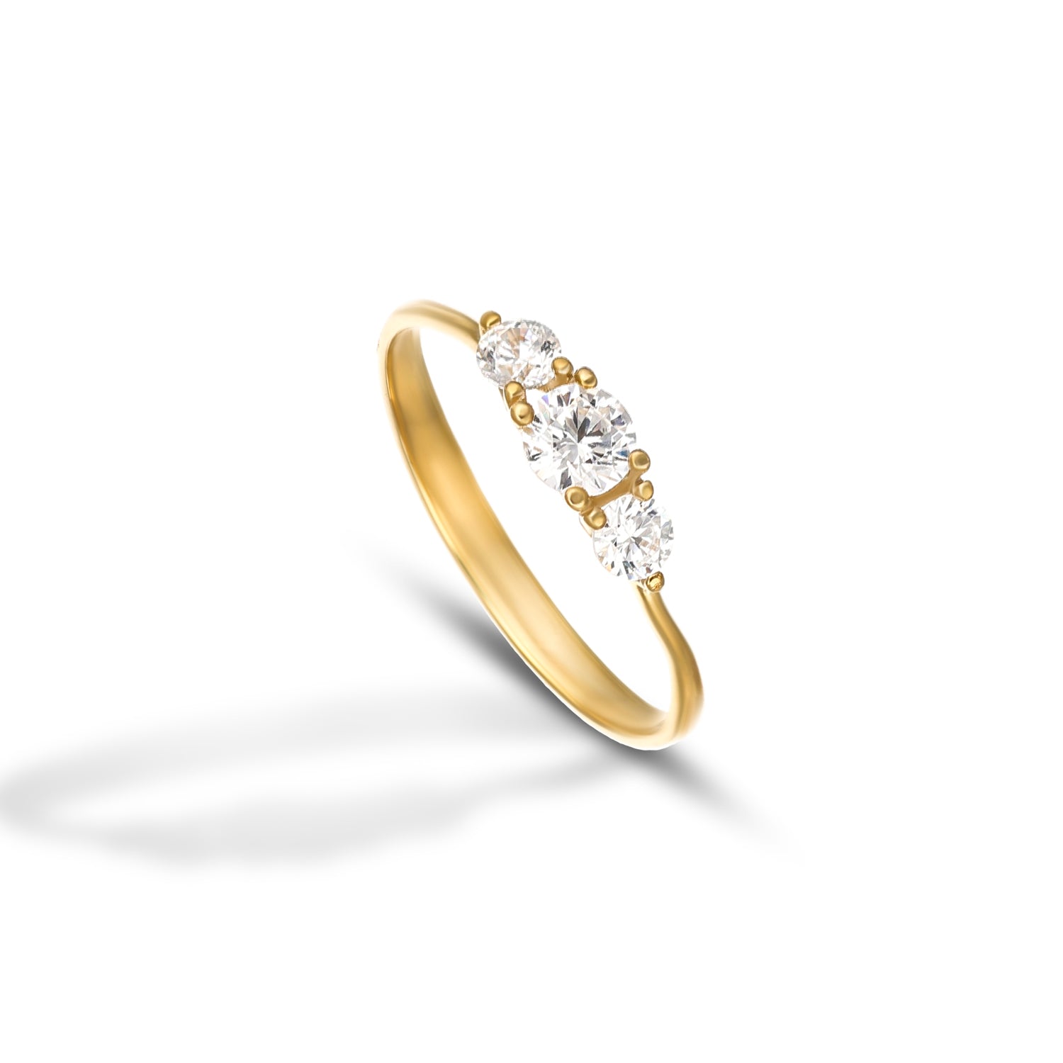 Three high-quality white zirconia stones alternate along the shank in a graduated design, creating a unique and harmonious light effect. The smooth shank ensures comfort and fit, making the ring versatile: perfect for wearing alone or layered with other jewelry.