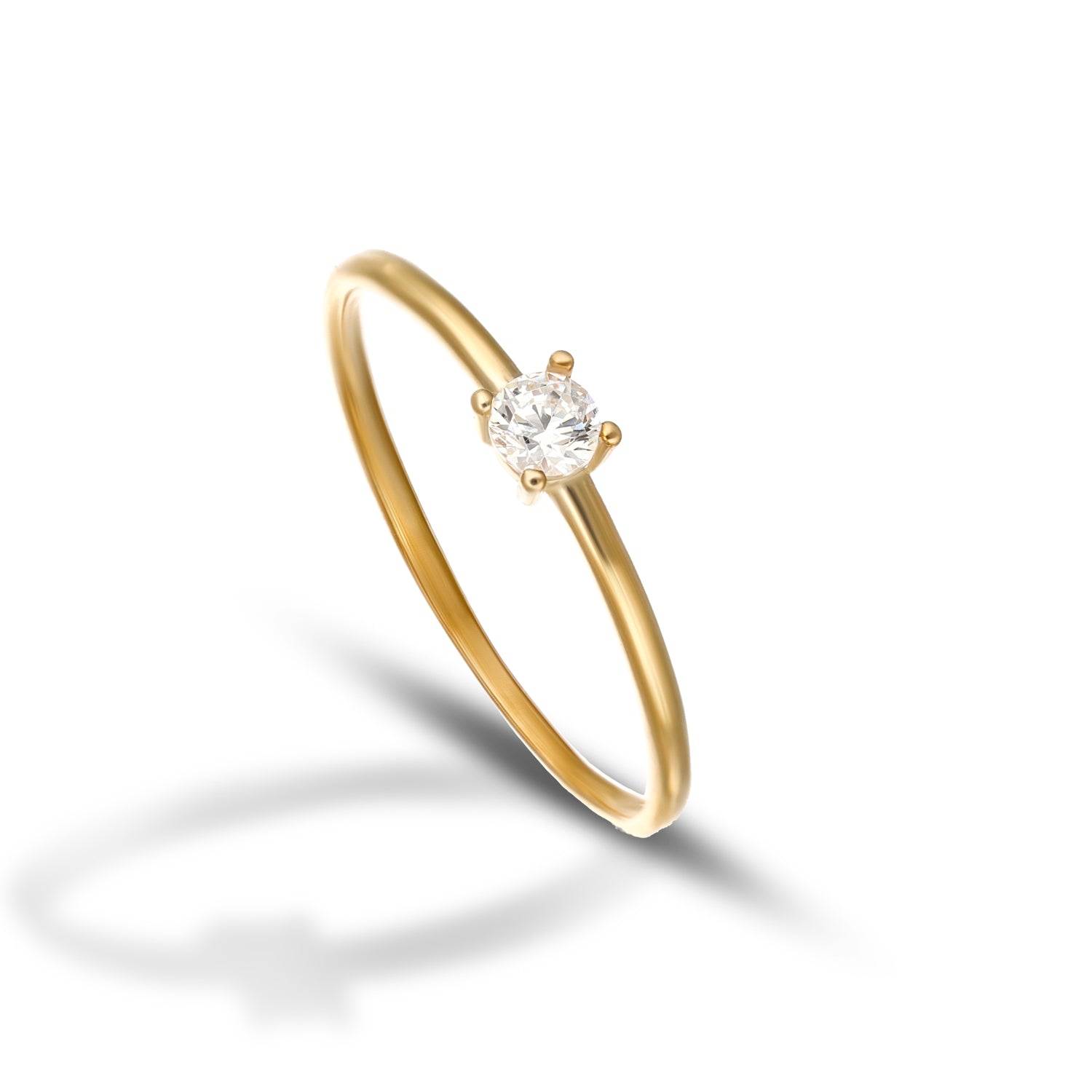 Discreet elegance and refined light: this solitaire with 3 mm zirconia on a smooth 9K gold shank captures the gaze with delicacy and harmony.