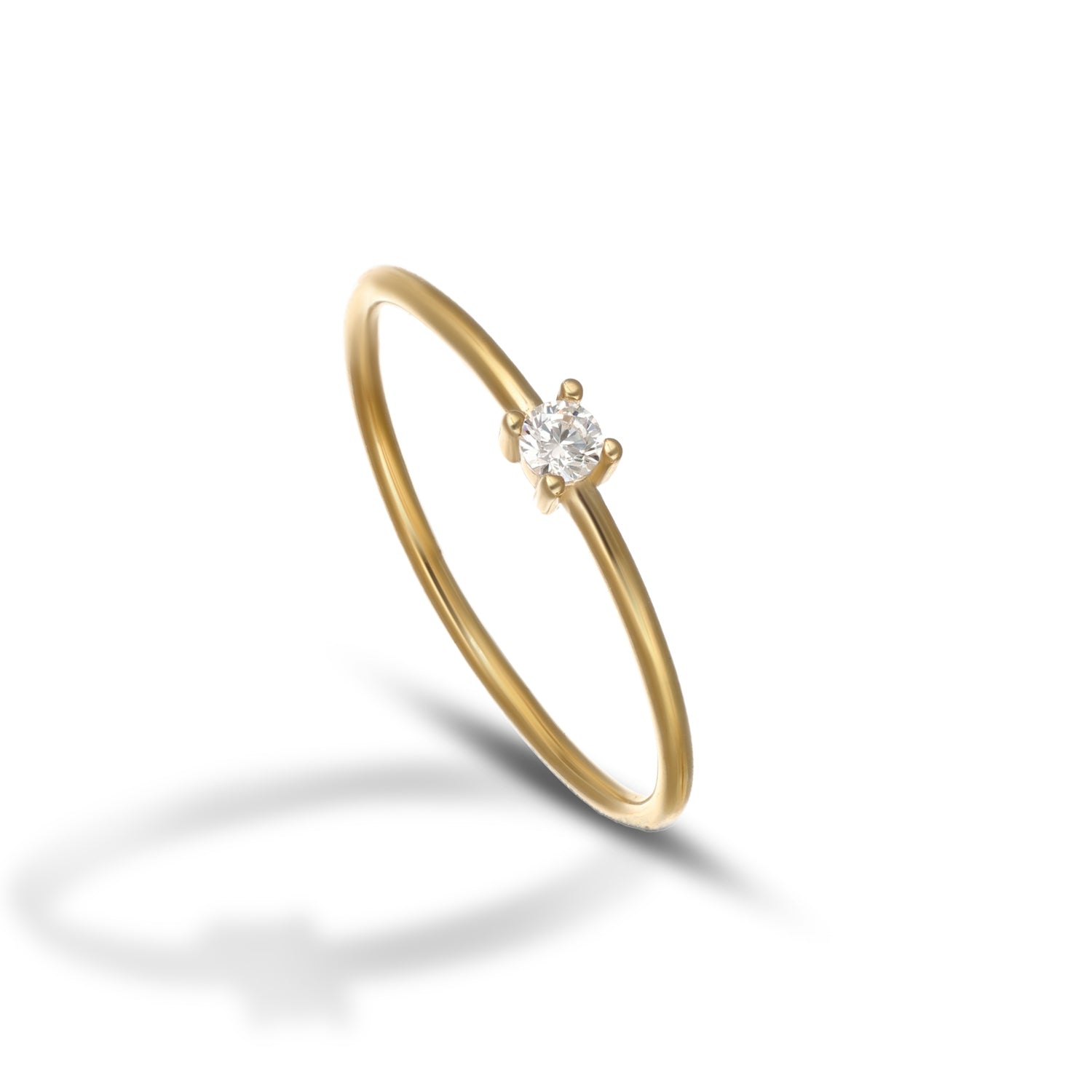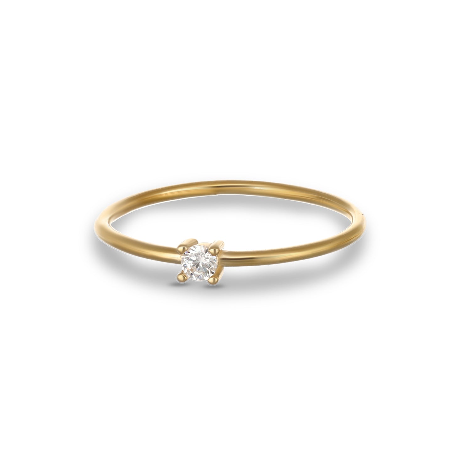 Élégance discrète et lumière raffinée : ce solitaire orné d'un zircon de 2 mm sur un anneau lisse en or 9 carats captive le regard avec délicatesse et harmonie.