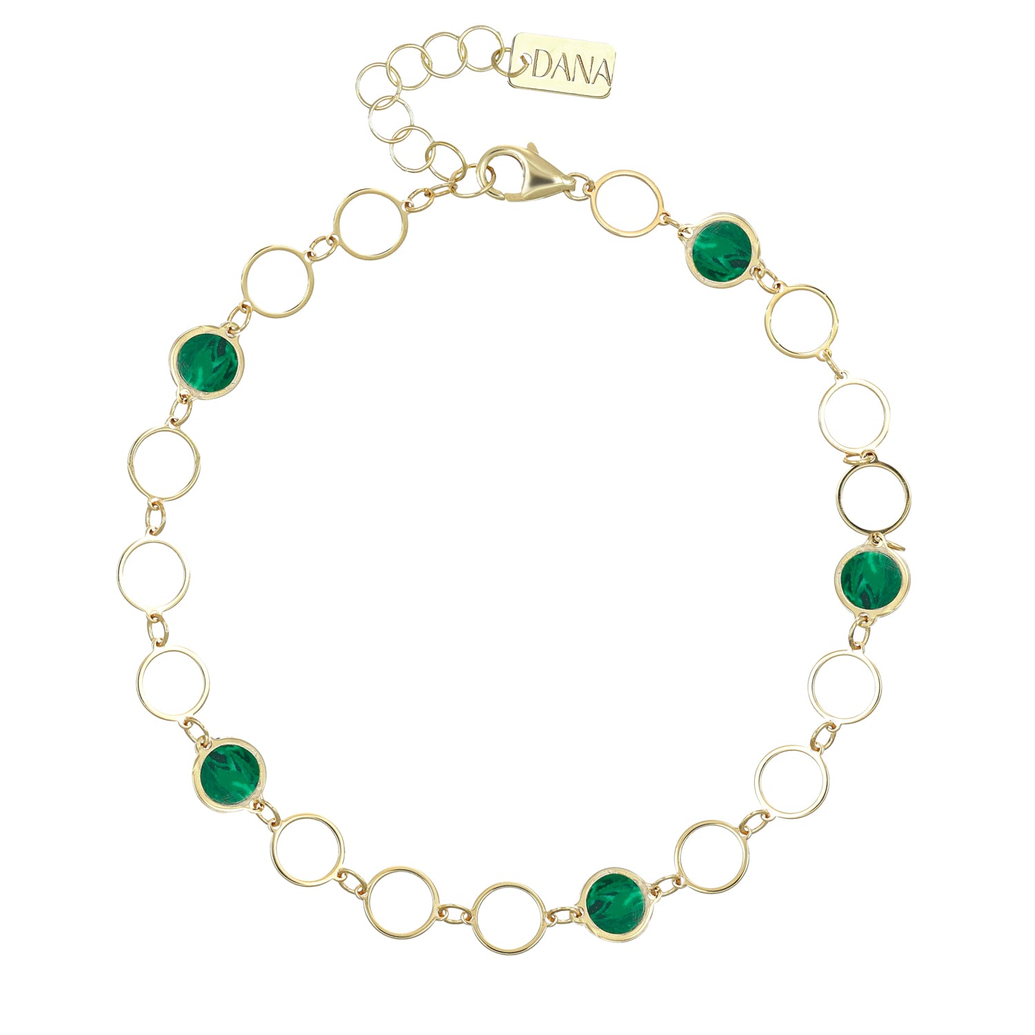 Le bracelet Circe est un jeu de contrastes et d'harmonie : des lignes douces et des formes arrondies alternent avec des détails en diamant et des touches d'onyx, de nacre et de malachite.