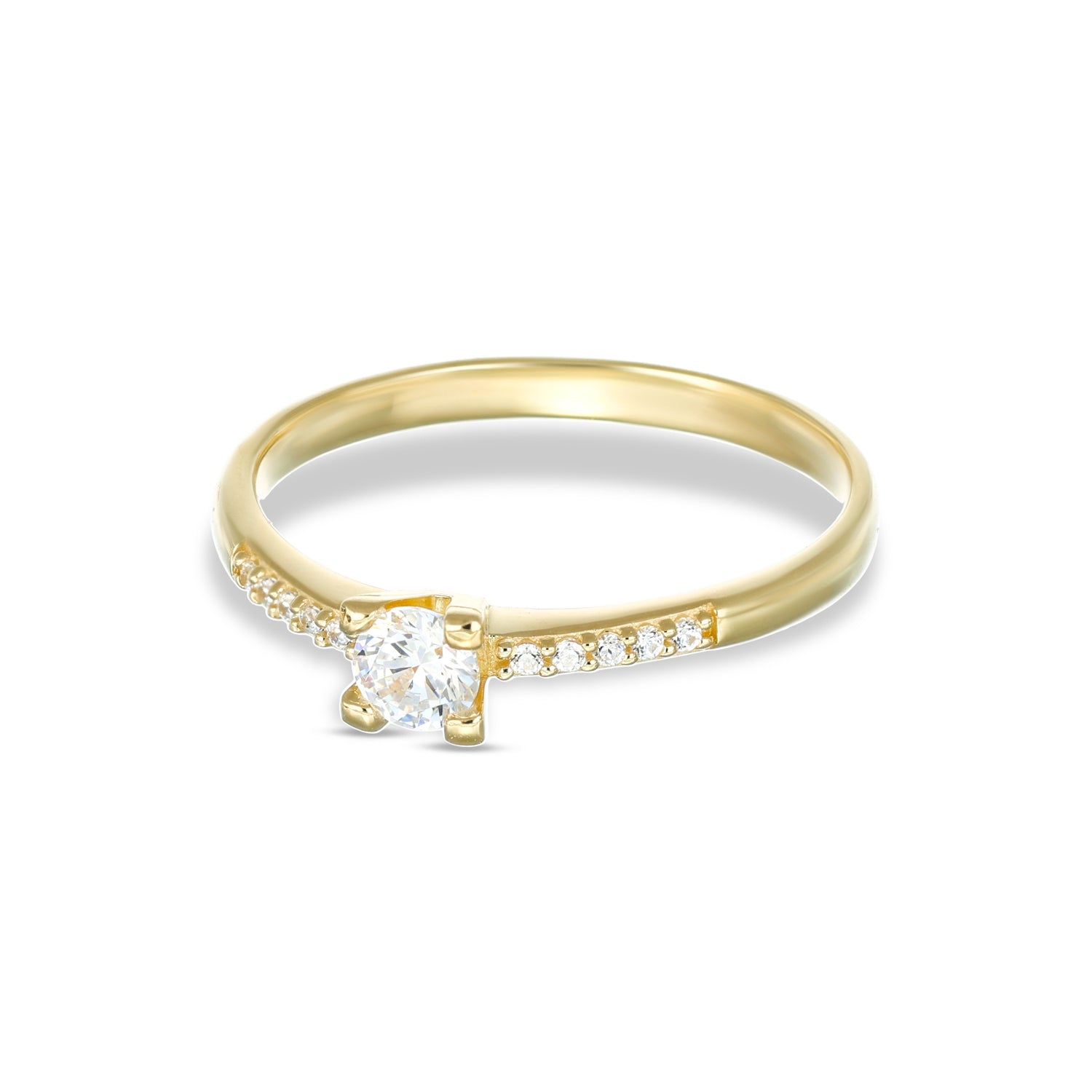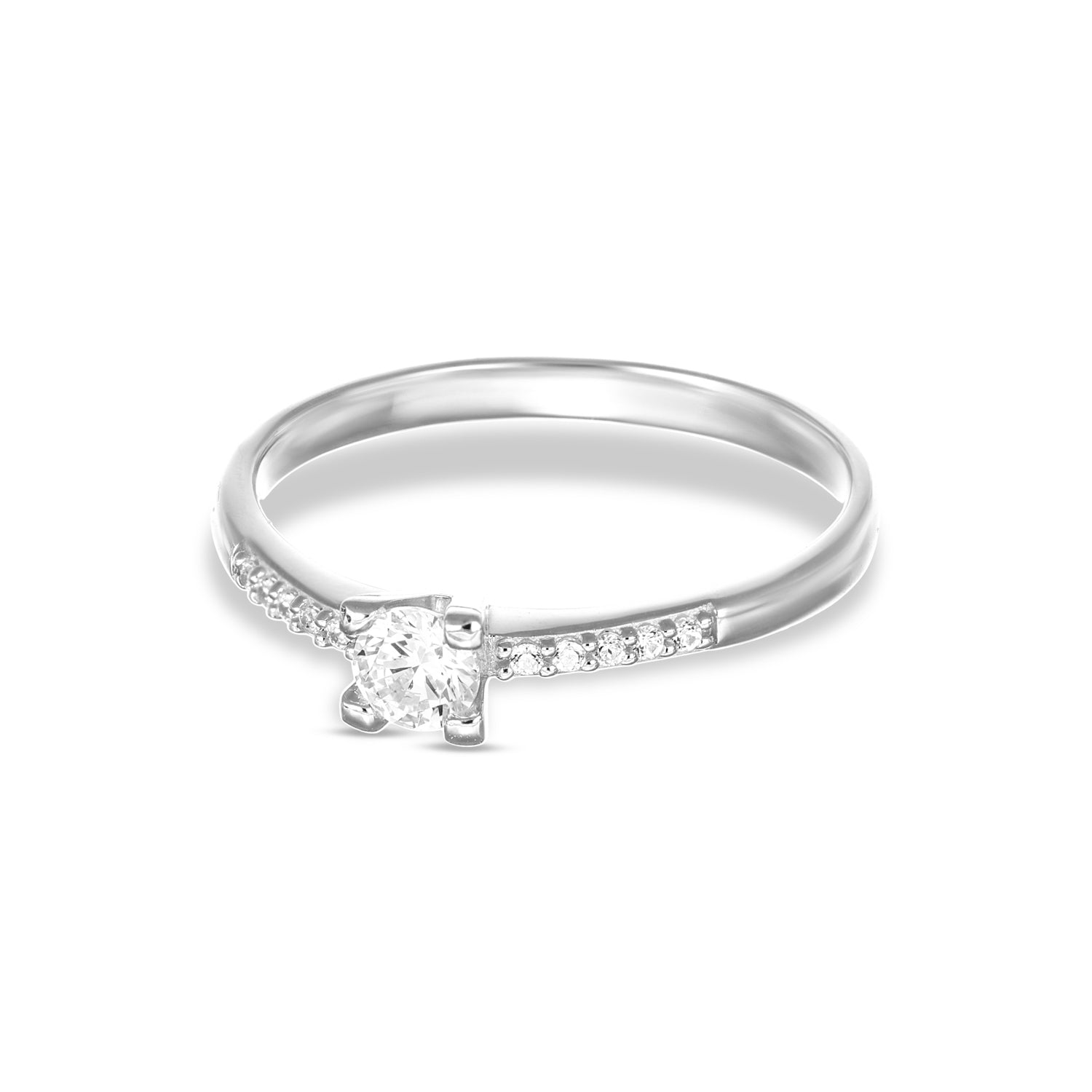 Un anello che combina il fascino di un solitario classico con dettagli moderni: il castone a V con 4 griffe valorizza la pietra centrale da 4 mm, mentre il gambo impreziosito da zirconi cattura la luce in un gioco armonico e luminoso. La forma a V aggiunge slancio e movimento, rendendo l’anello elegante, delicato e dal design unico.