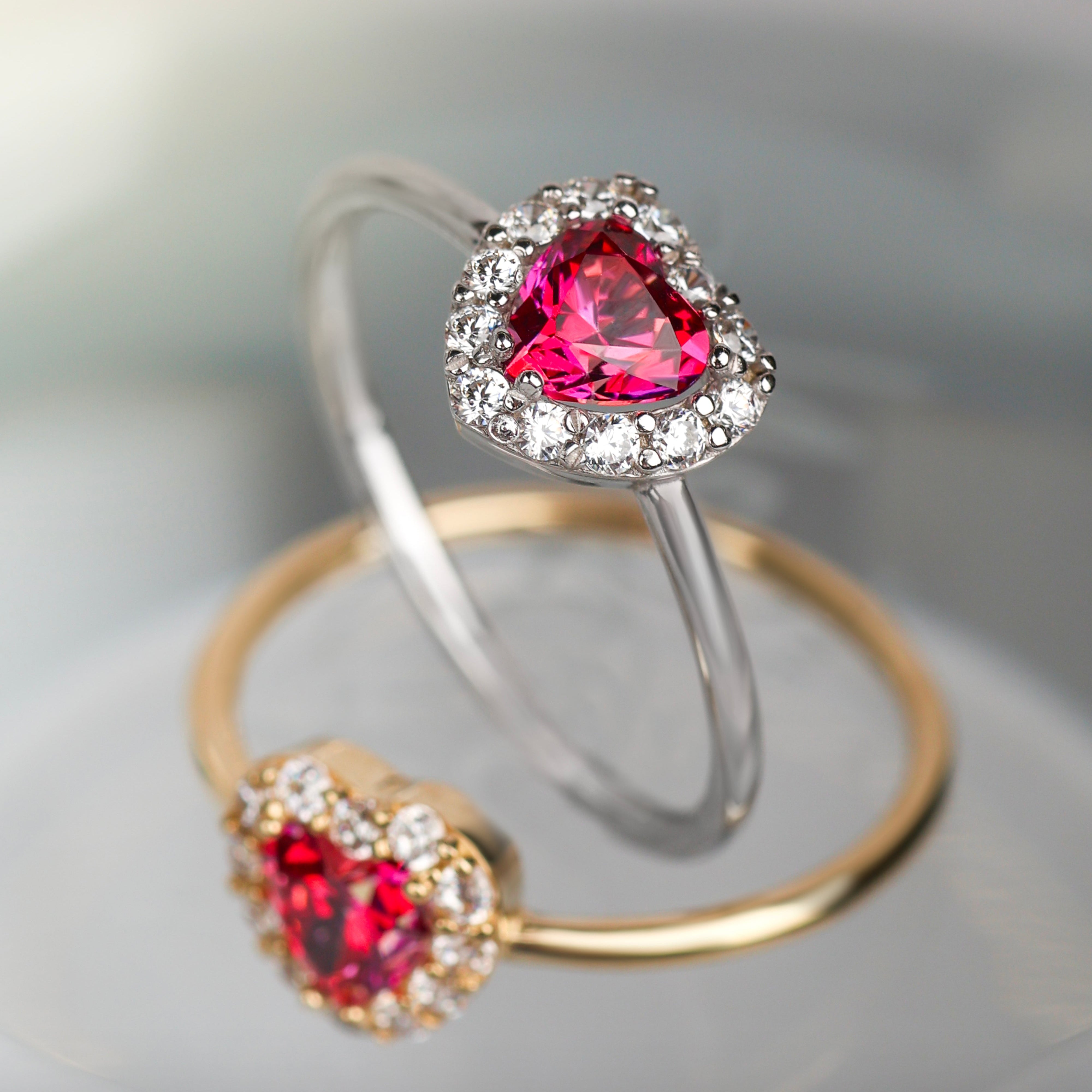 Questo anello in Oro 9 Carati firmato Dana racchiude l’intensità dei sentimenti in una pietra Swarovski a forma di cuore, disponibile in bianco o rosso. Intorno, un prezioso abbraccio di zirconi bianchi ne esalta la luce e il significato.