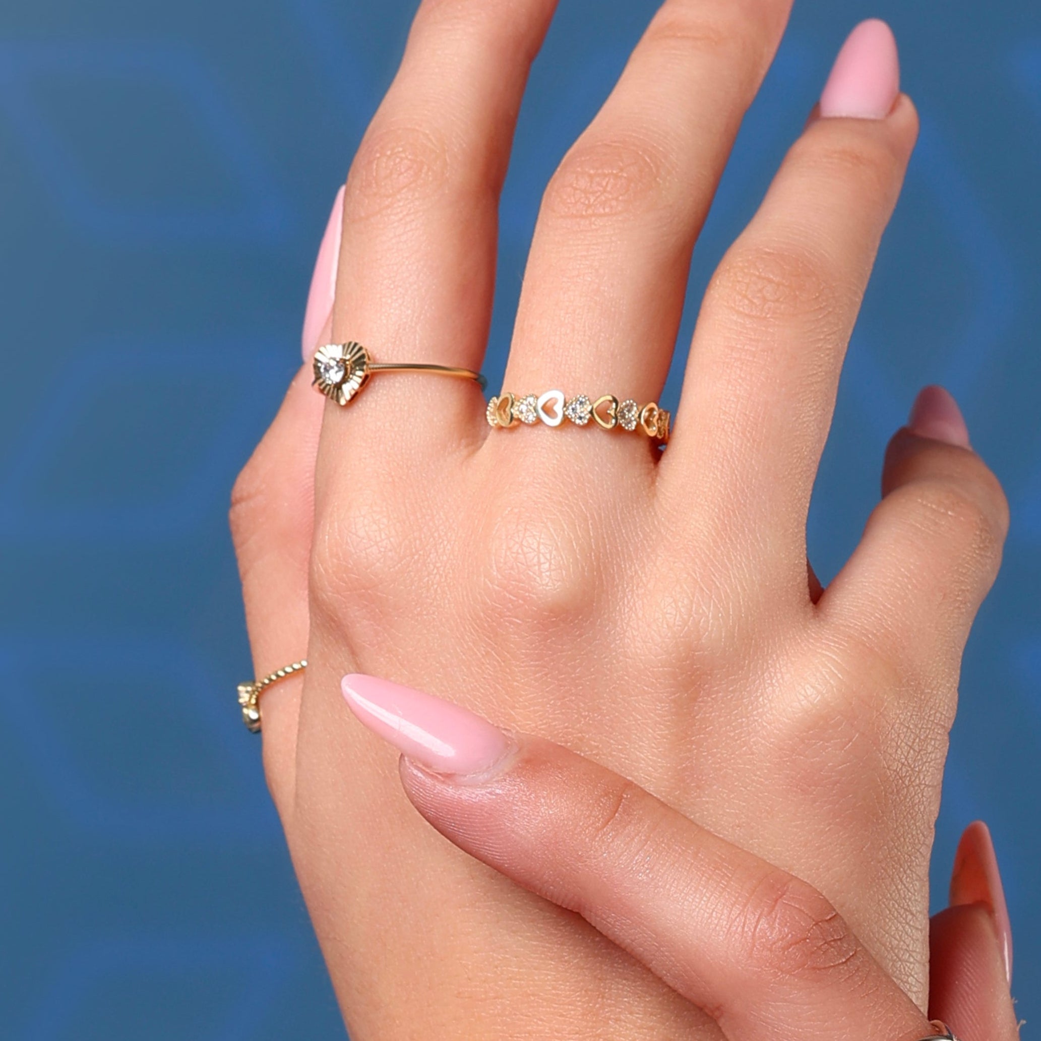 Disponibile in oro rosa, per chi ama la dolcezza e il romanticismo, o in oro giallo, per chi sceglie la luce della tradizione, questo anello in Oro 9 Carati è pensato per la donna che sa splendere anche nei dettagli più semplici.