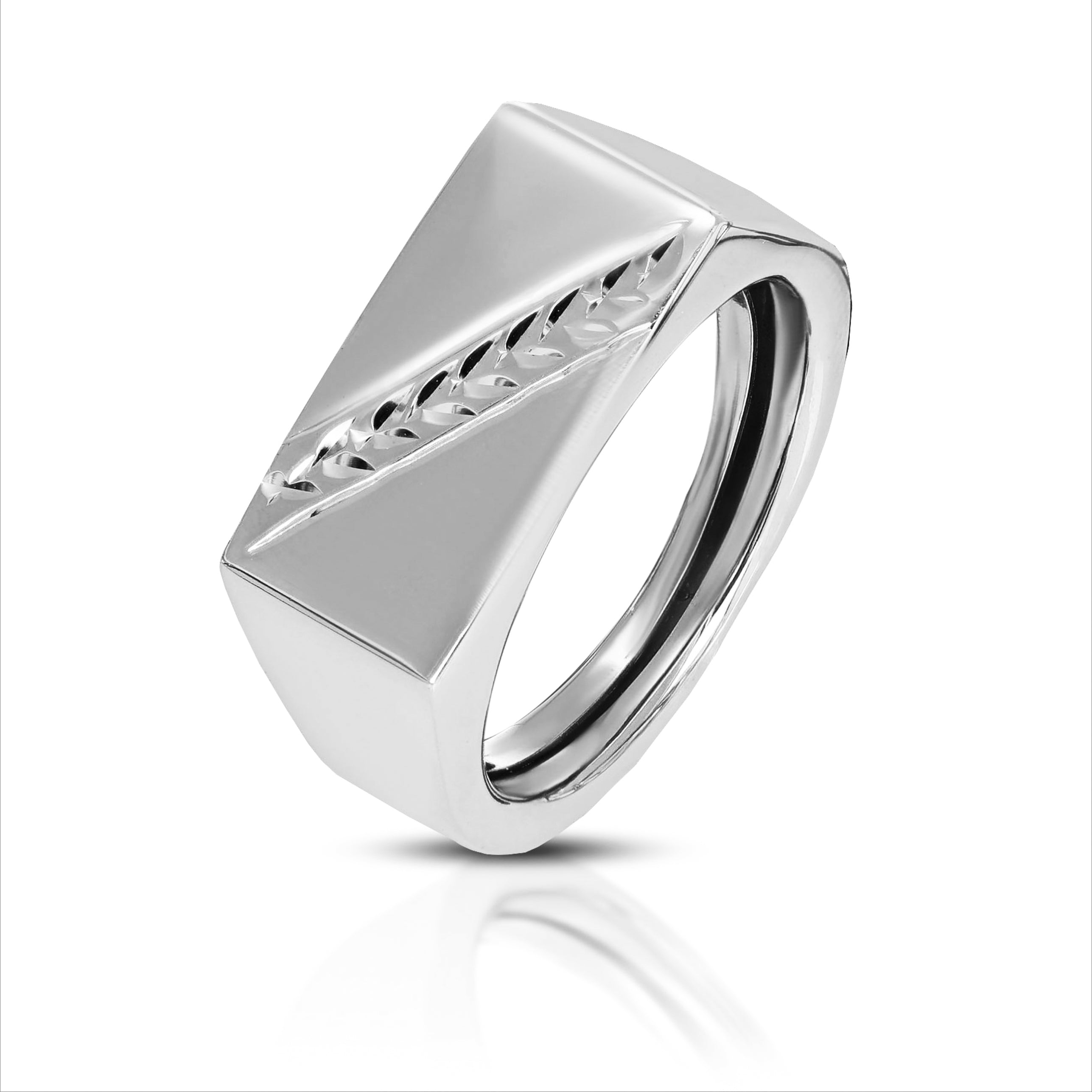 La forma unica e la striscia diamantata offrono uno sfondo perfetto per la tua incisione personale. Distinguiti e aggiungi un tocco di lusso alla tua collezione di gioielli!