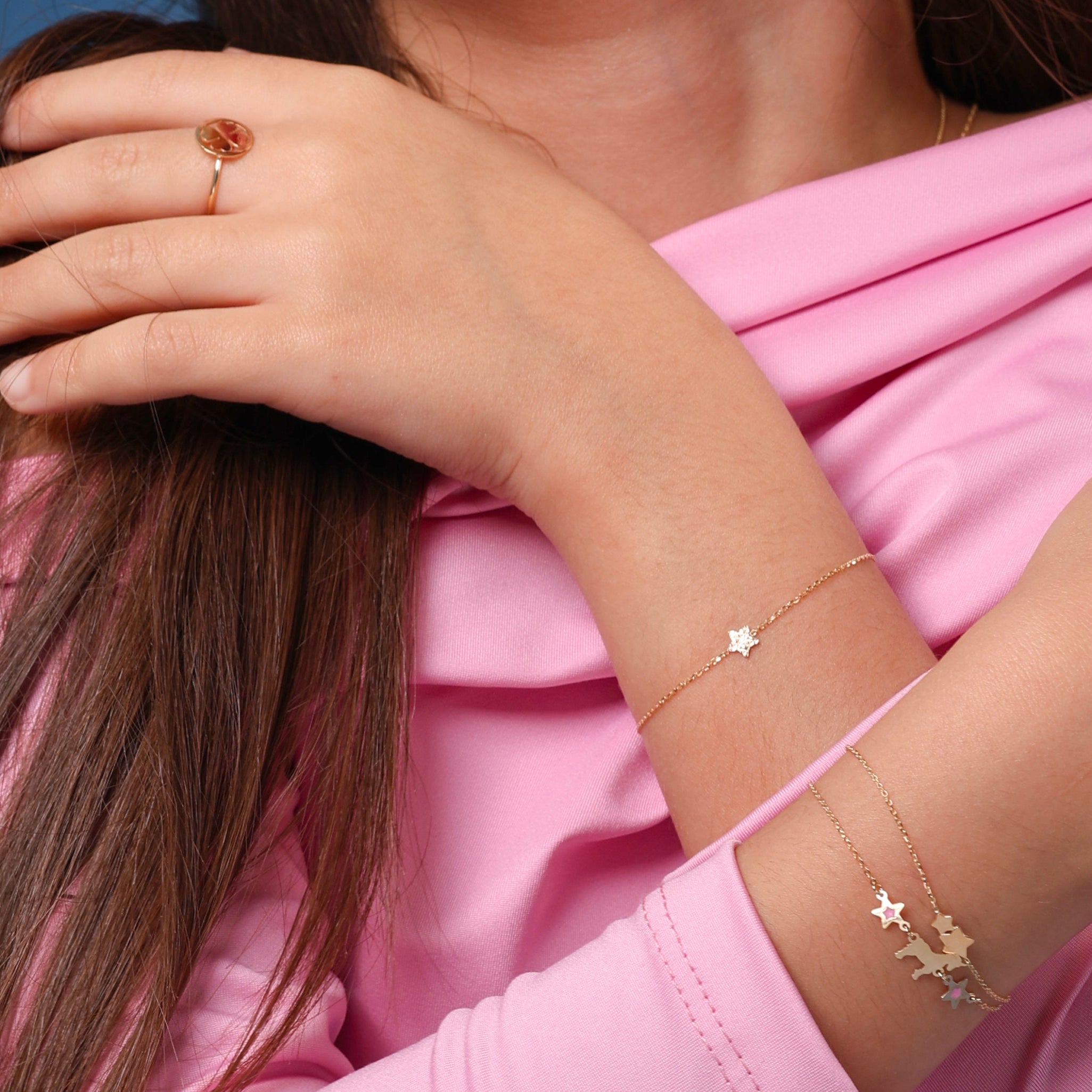 Questo Bracciale con stella diamantata è un accessorio perfetto non solo per i più piccoli poichè grazie alla lunghezza regolabile potrà essere indossato anche negli anni a venire. Il simbolo della stella rappresenta la speranza futura, rendendolo un regalo con un profondo significato ideale per ogni occasione