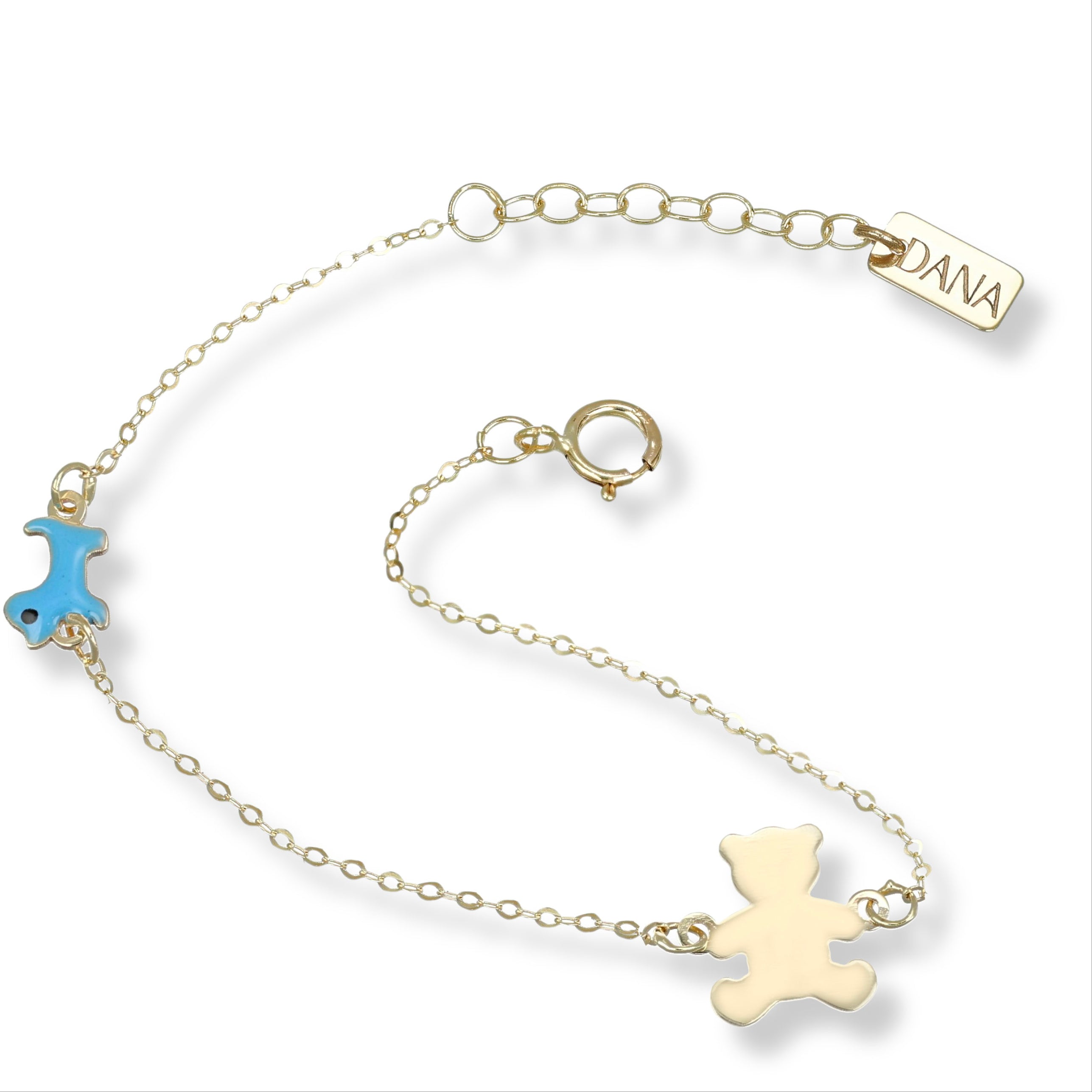 Il Bracciale Baby con orsetto e cagnolino è perfetto per i piccoli amanti degli animali! Realizzato in Oro 9 carati, è un regalo di valore che crescerà con loro. Con lunghezza regolabile, è ideale per le prime occasioni speciali come nascita e battesimo. Regala un tocco di tenerezza e stile!