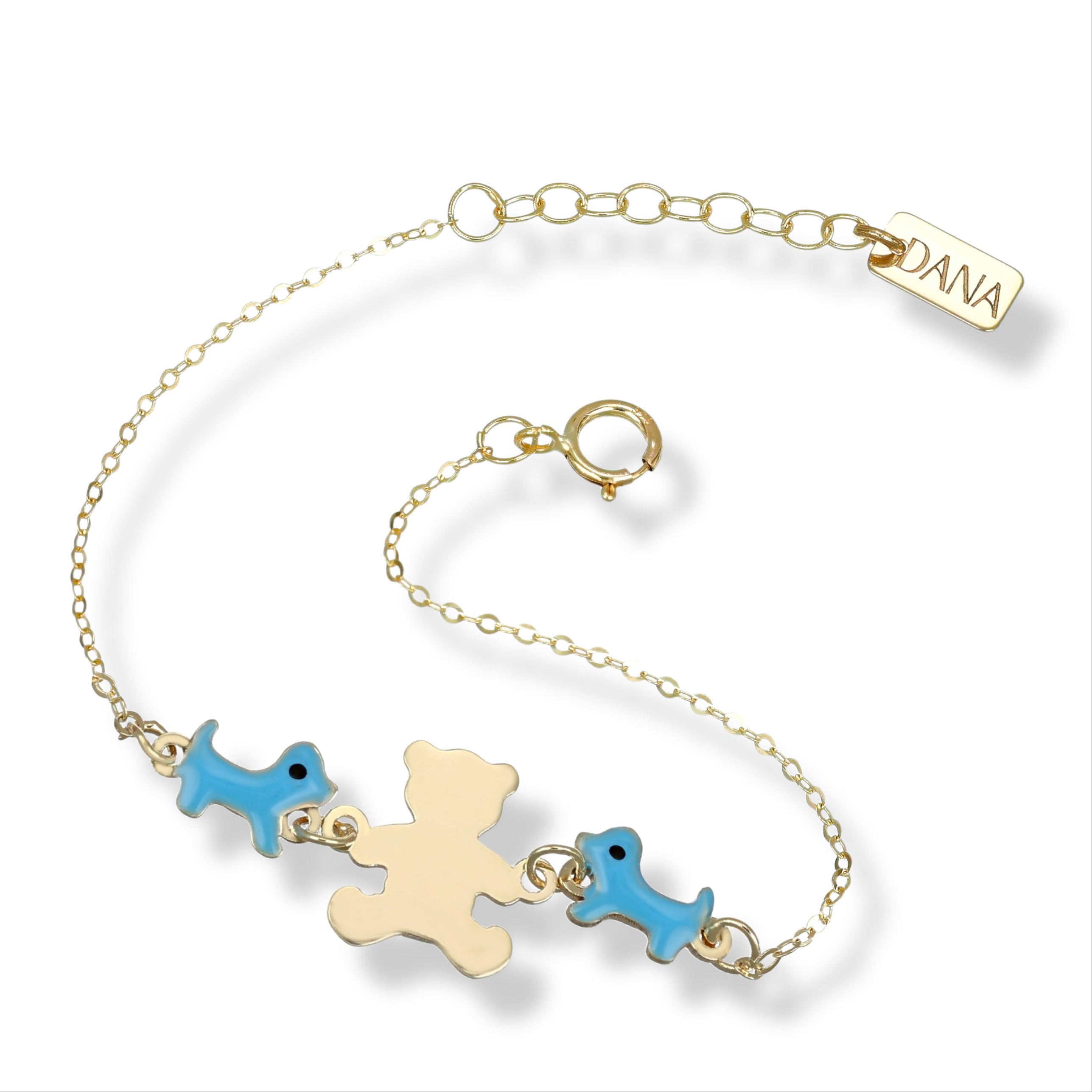 Il Bracciale Baby con orsetto e cagnolino è perfetto per i piccoli amanti degli animali! Realizzato in Oro 9 carati, è un regalo di valore che crescerà con loro. Con lunghezza regolabile, è ideale per le prime occasioni speciali come nascita e battesimo. Regala un tocco di tenerezza e stile!