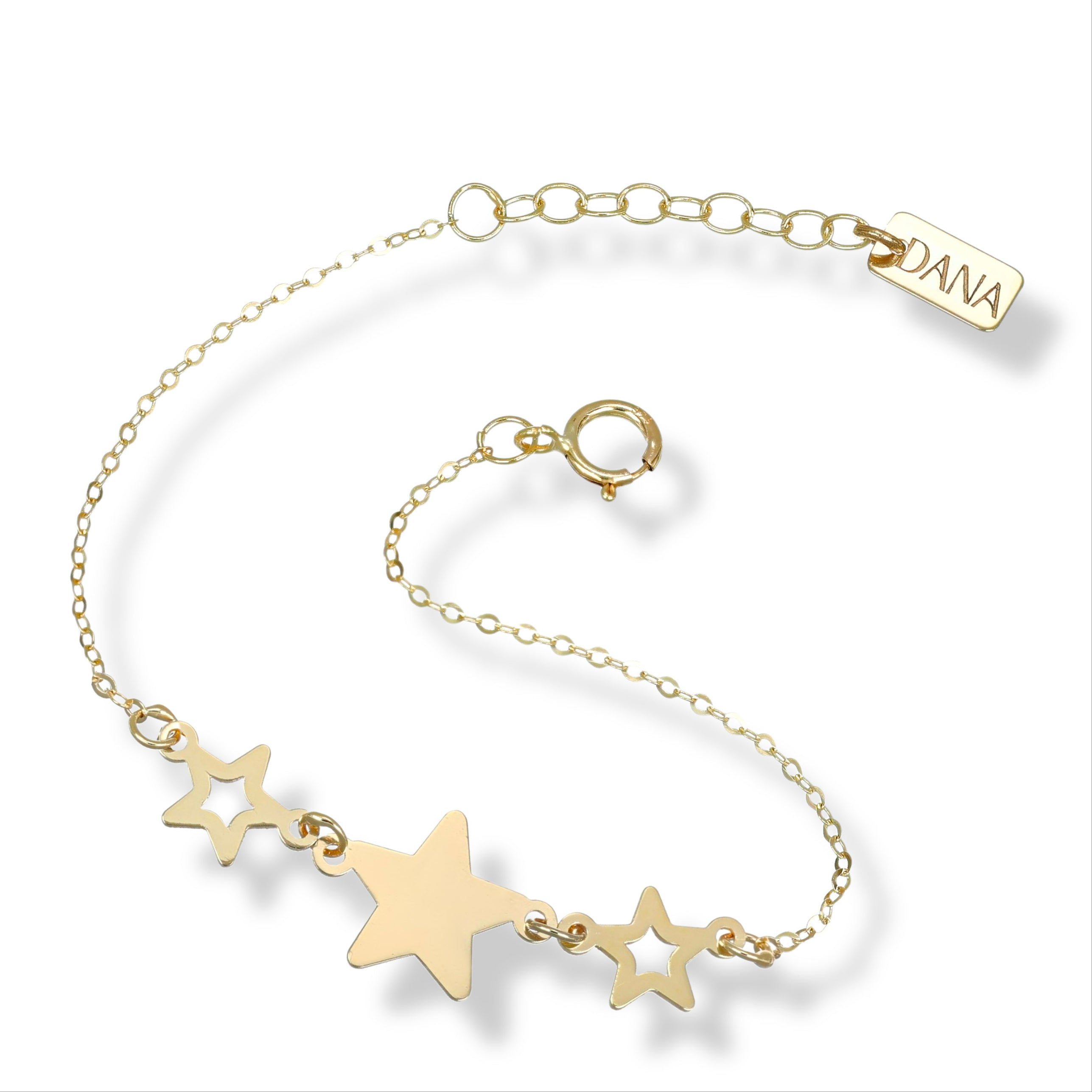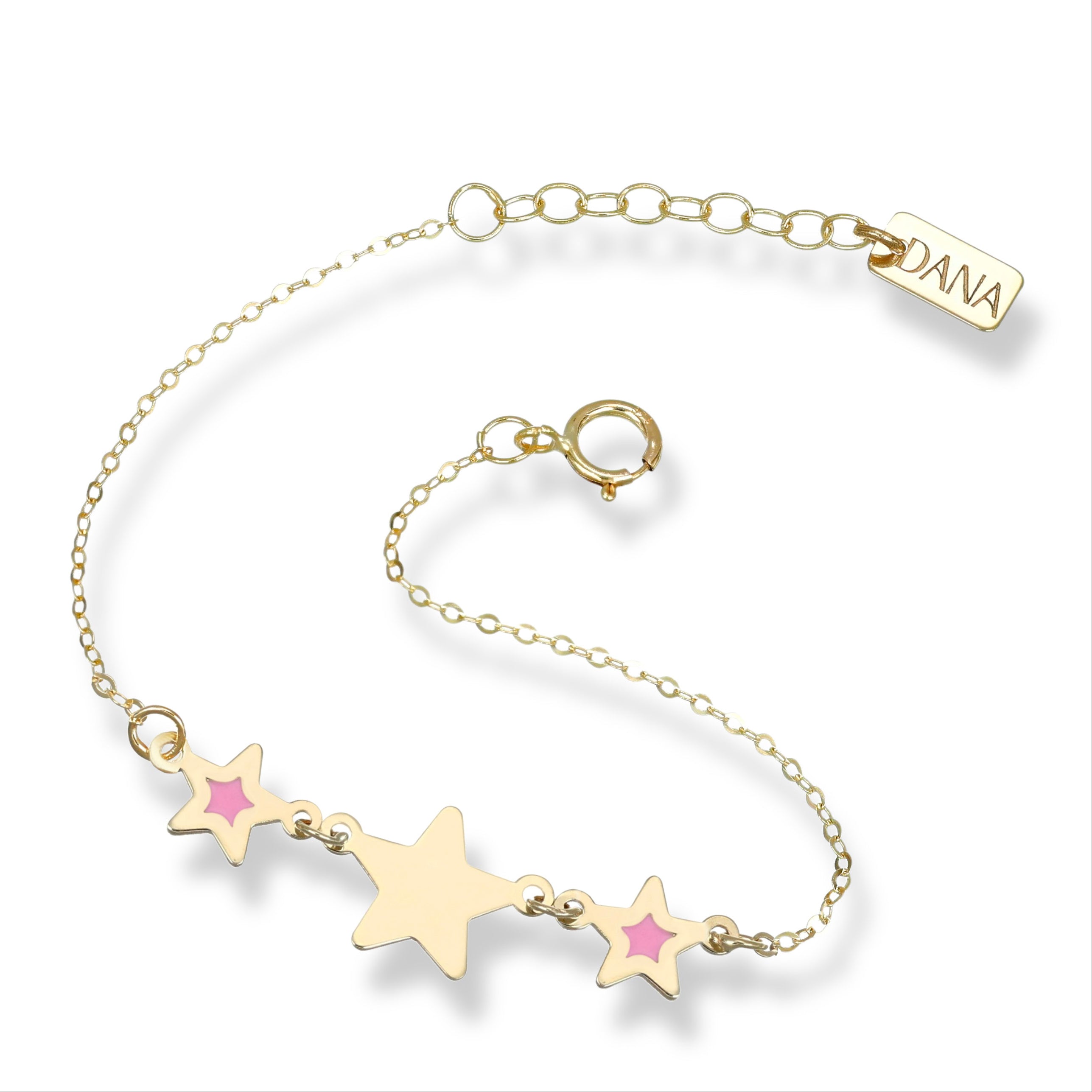 Con il nostro bracciale con stelle, trovare il regalo perfetto in occasione di una nascita, del primo compleanno o del battesimo sarà davvero semplice. Simbolo di speranza, la stella adorna questo bracciale dalla lunghezza regolabile. Un regalo con un significato unico e originale!