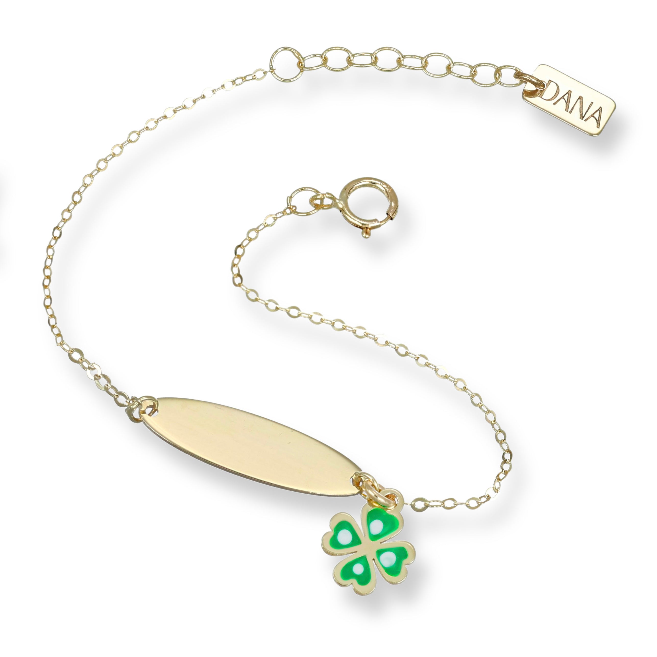 Bracciale Baby con targa e quadrifoglio pendente