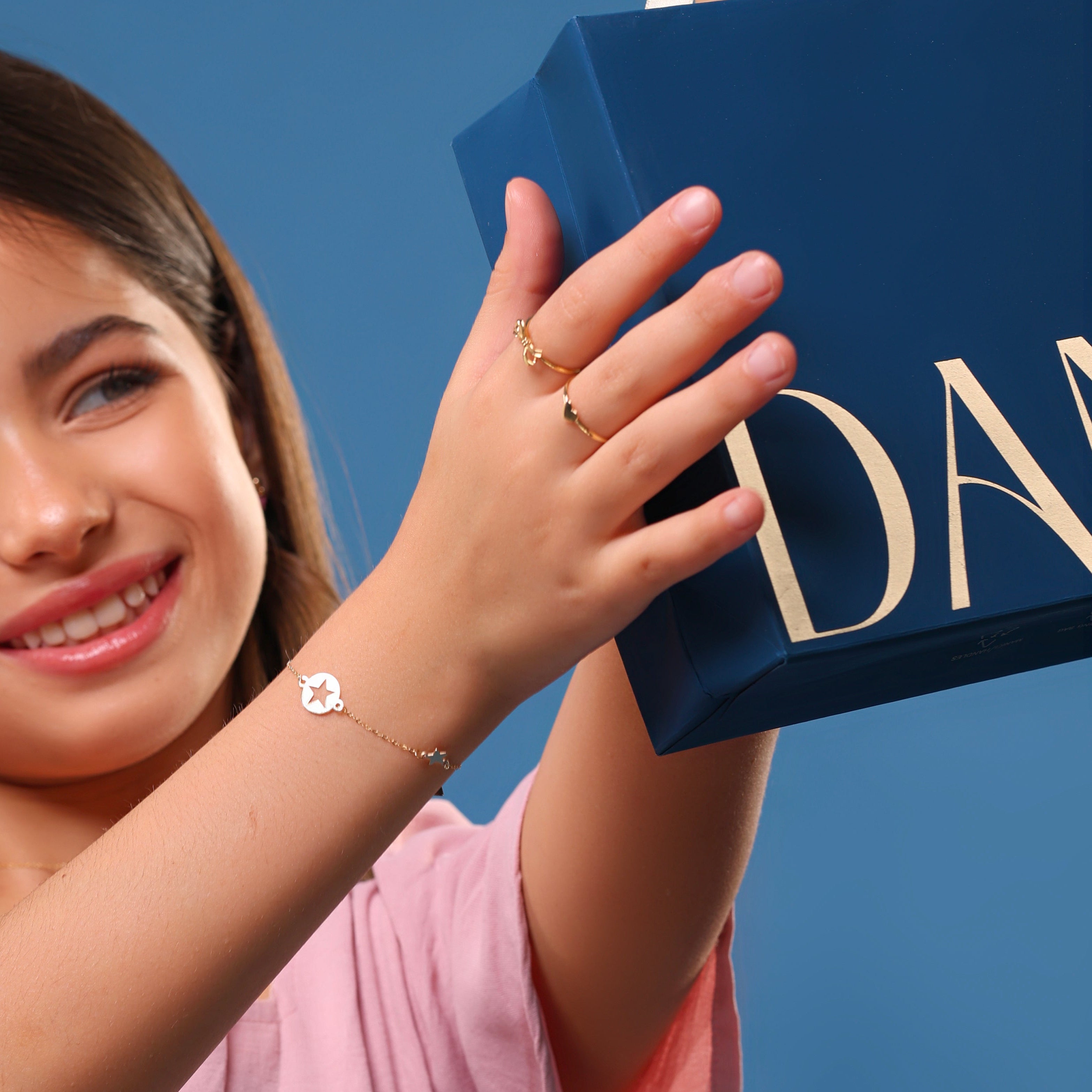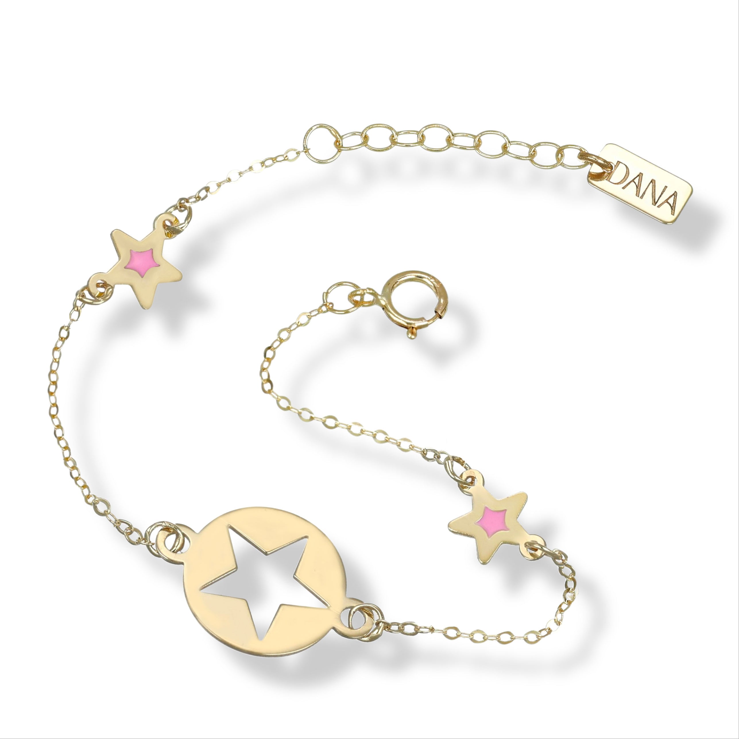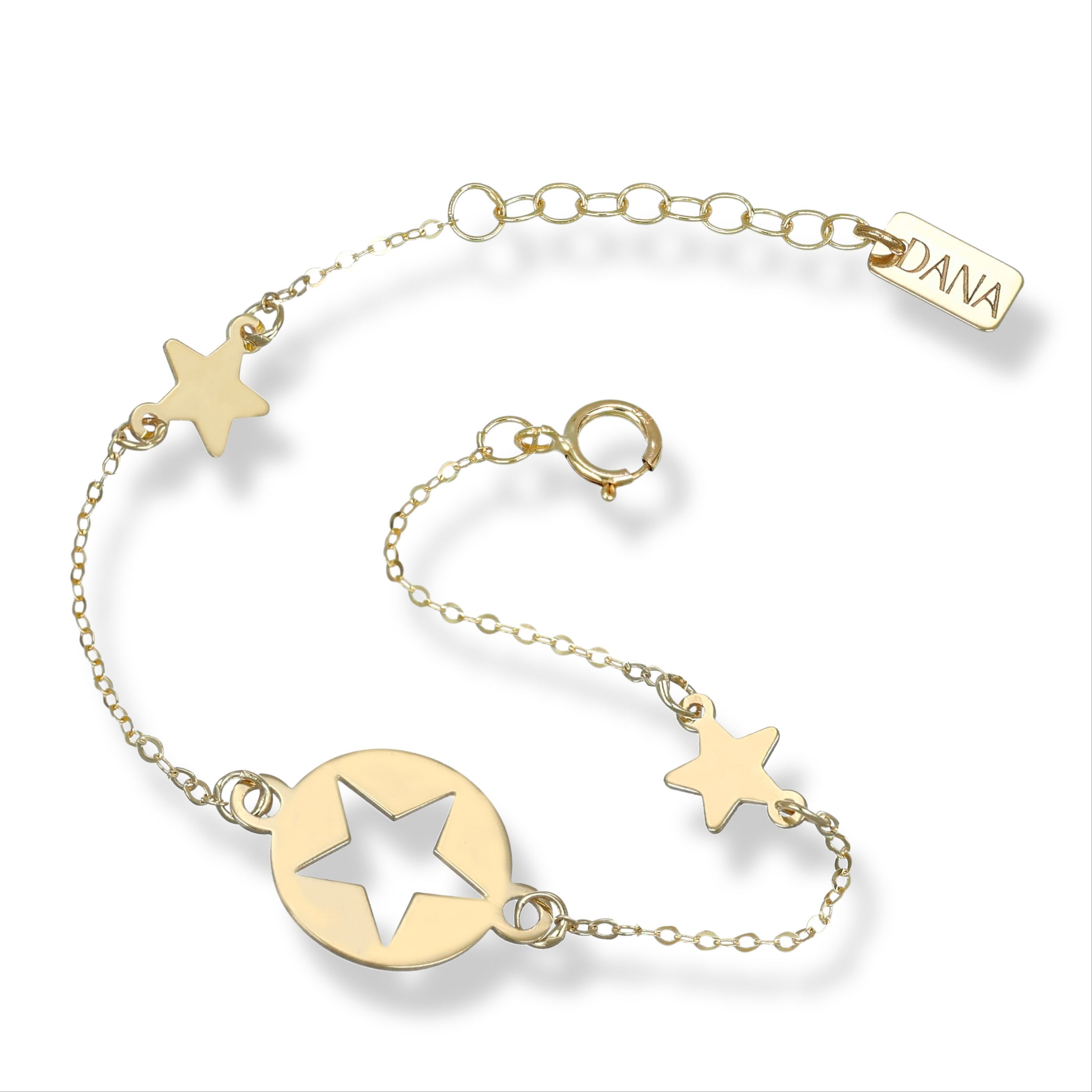 Questo bracciale in Oro 9 Carati con stelline, simbolo di speranza e buona fortuna è perfetto da regalare ai nuovi arrivati per augurare loro un futuro luminoso.