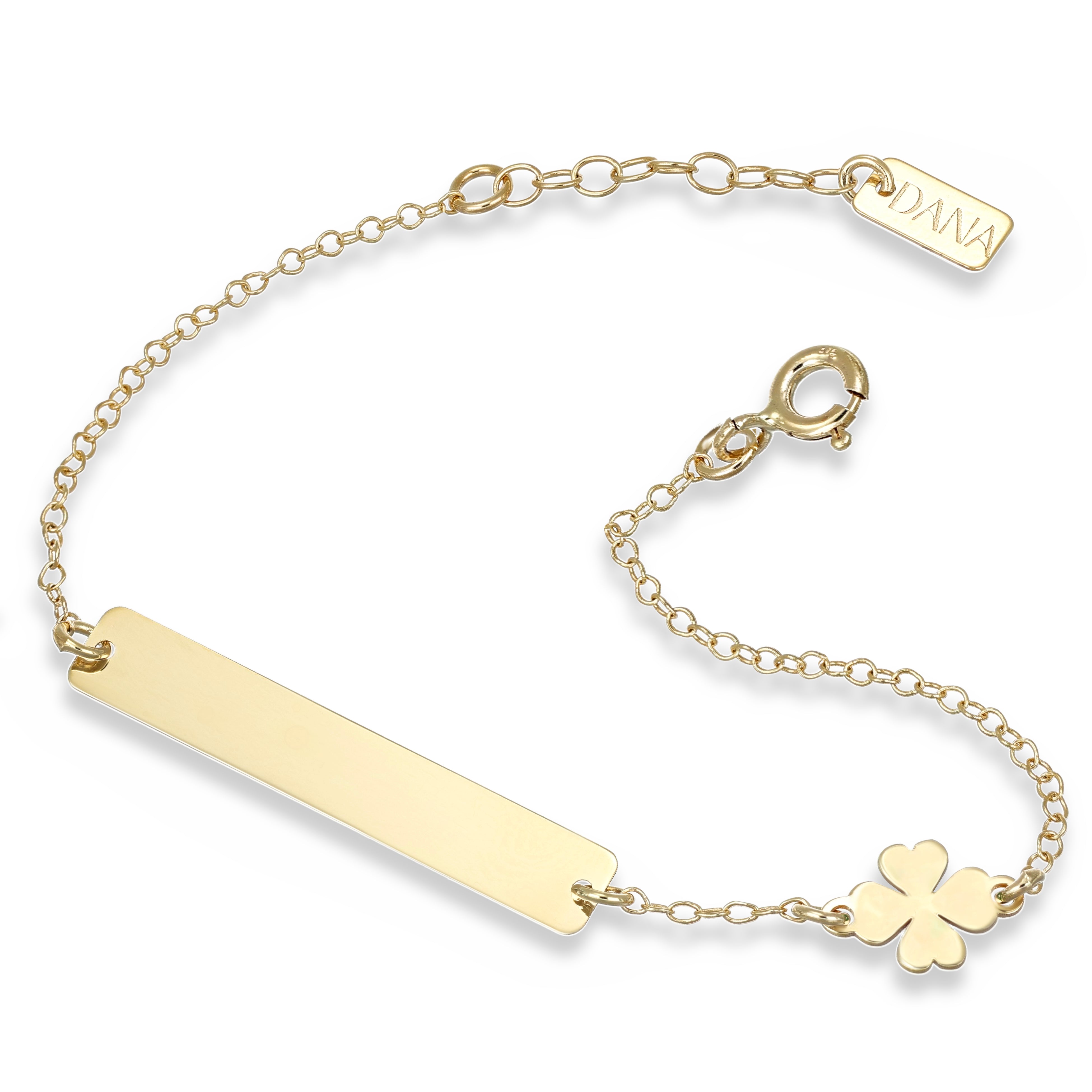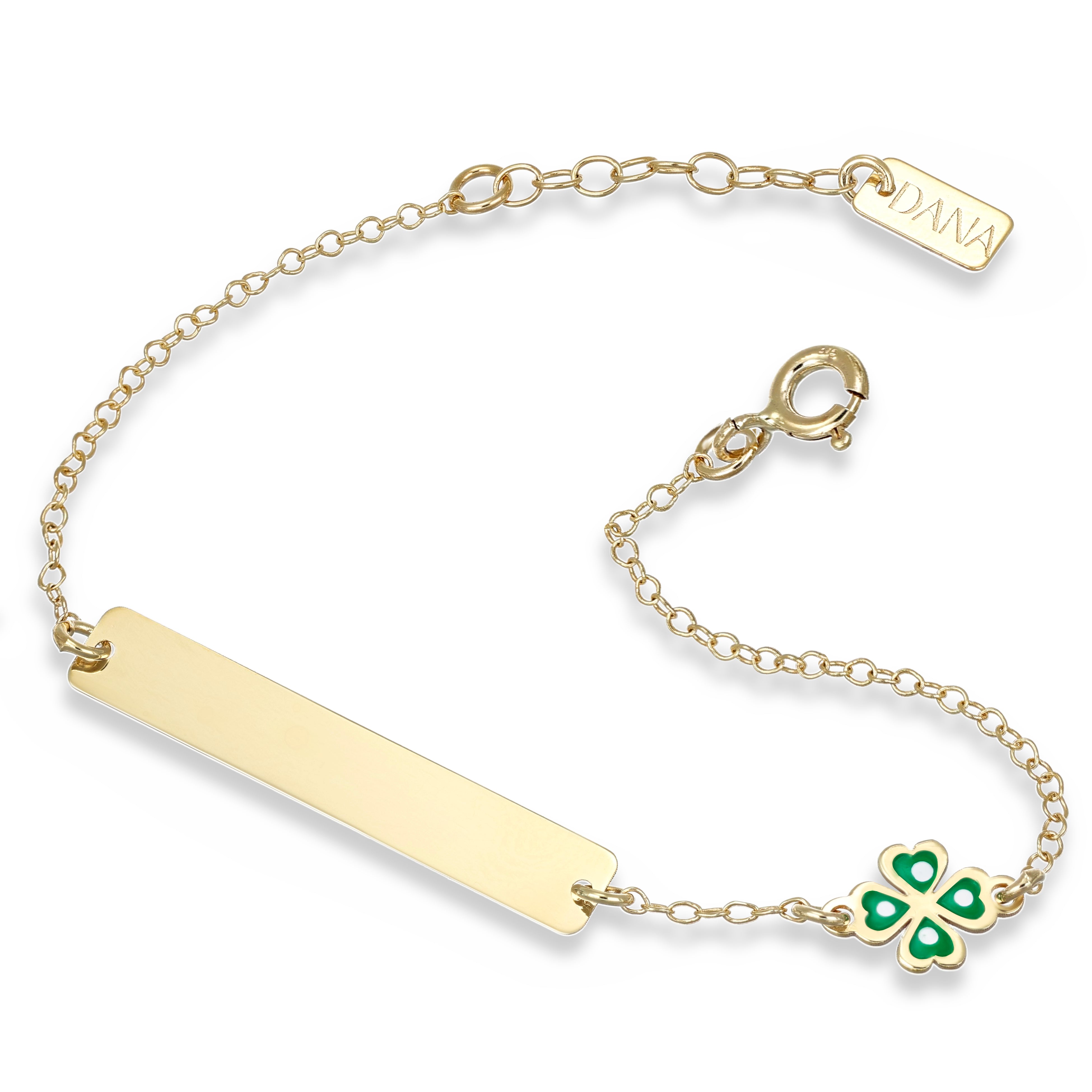 Bracciale Baby - Ellada Collection - con targa rettangolare e quadrifoglio a lastra