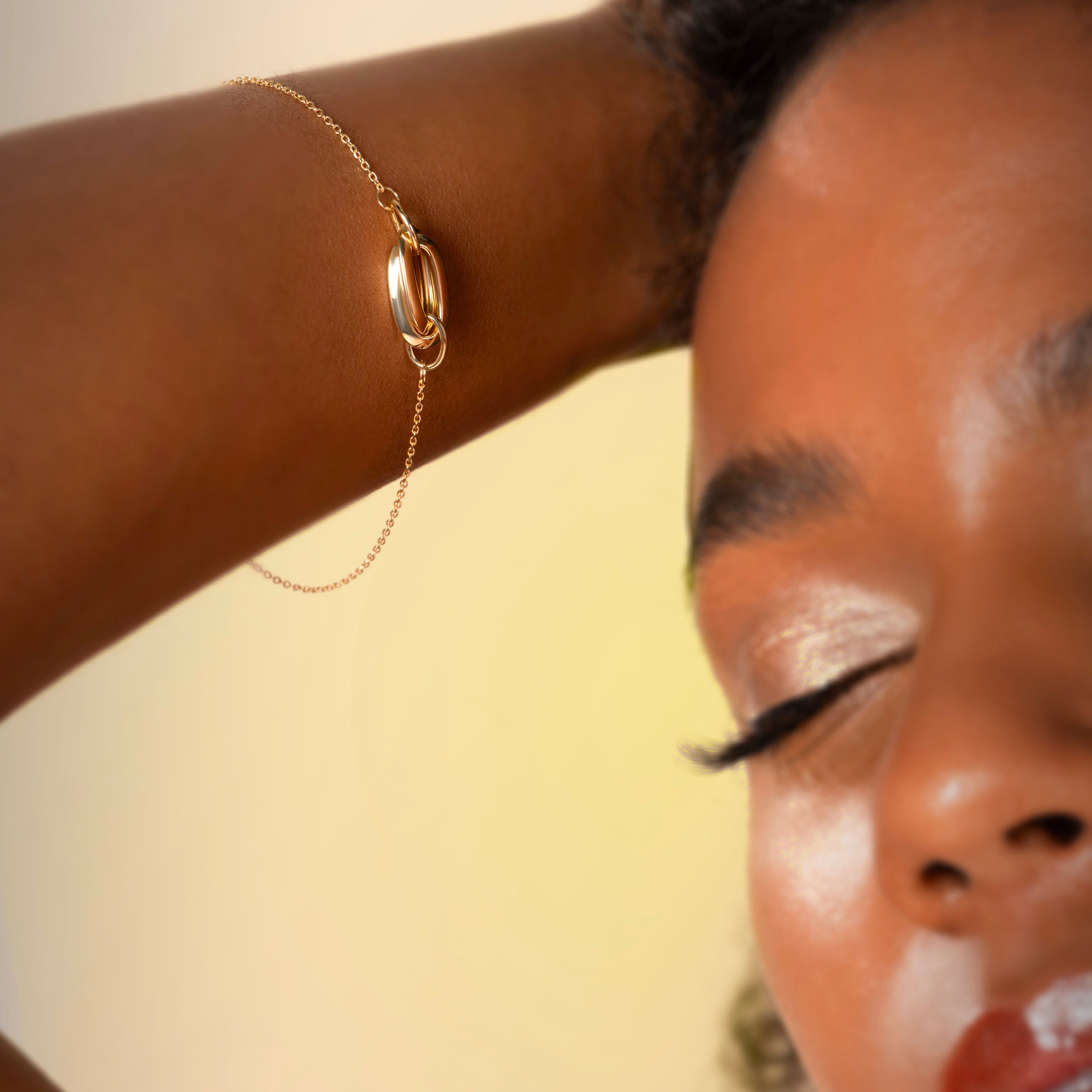 Il bracciale Lien in Oro giallo 9 Carati è un omaggio ai legami che contano davvero. Al centro, due ovali intrecciati raccontano connessioni autentiche: invisibili ma forti, leggere ma profonde.
