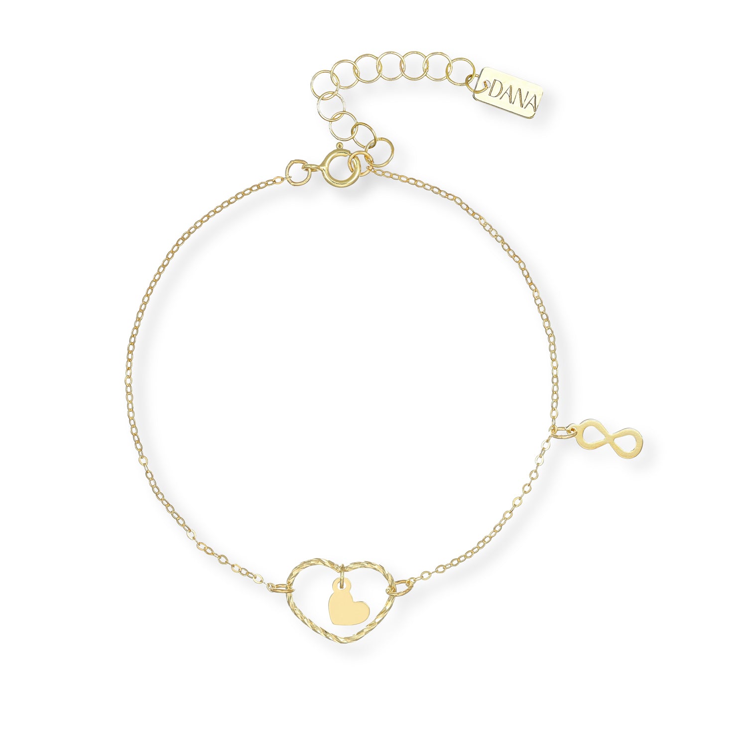 Realizzato in Oro 9 Carati, questo bracciale è un gioiello sofisticato che può essere indossato ogni giorno o regalato per celebrare un momento speciale. Un simbolo di amore senza confini, per chi cerca un gioiello che vada oltre il tempo.