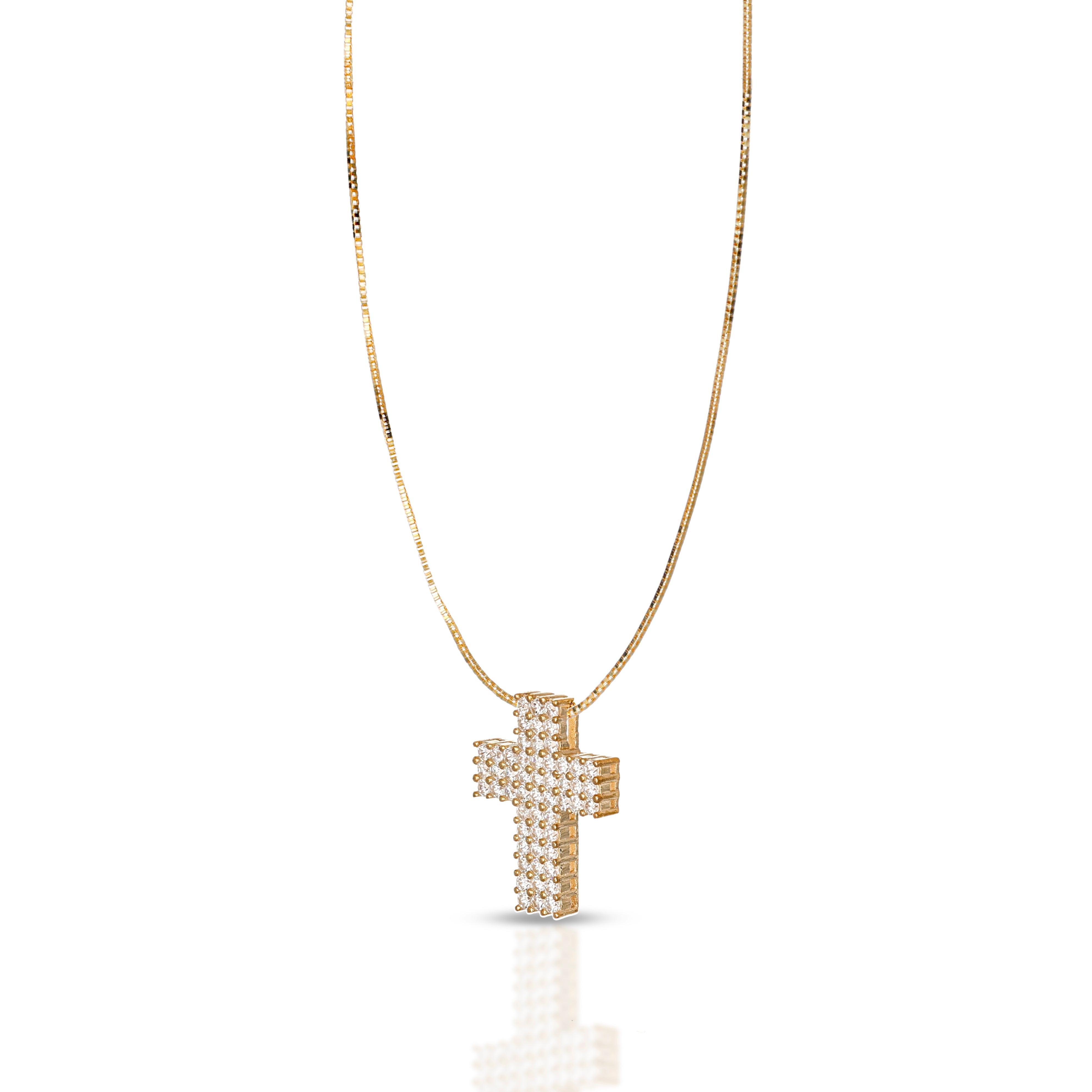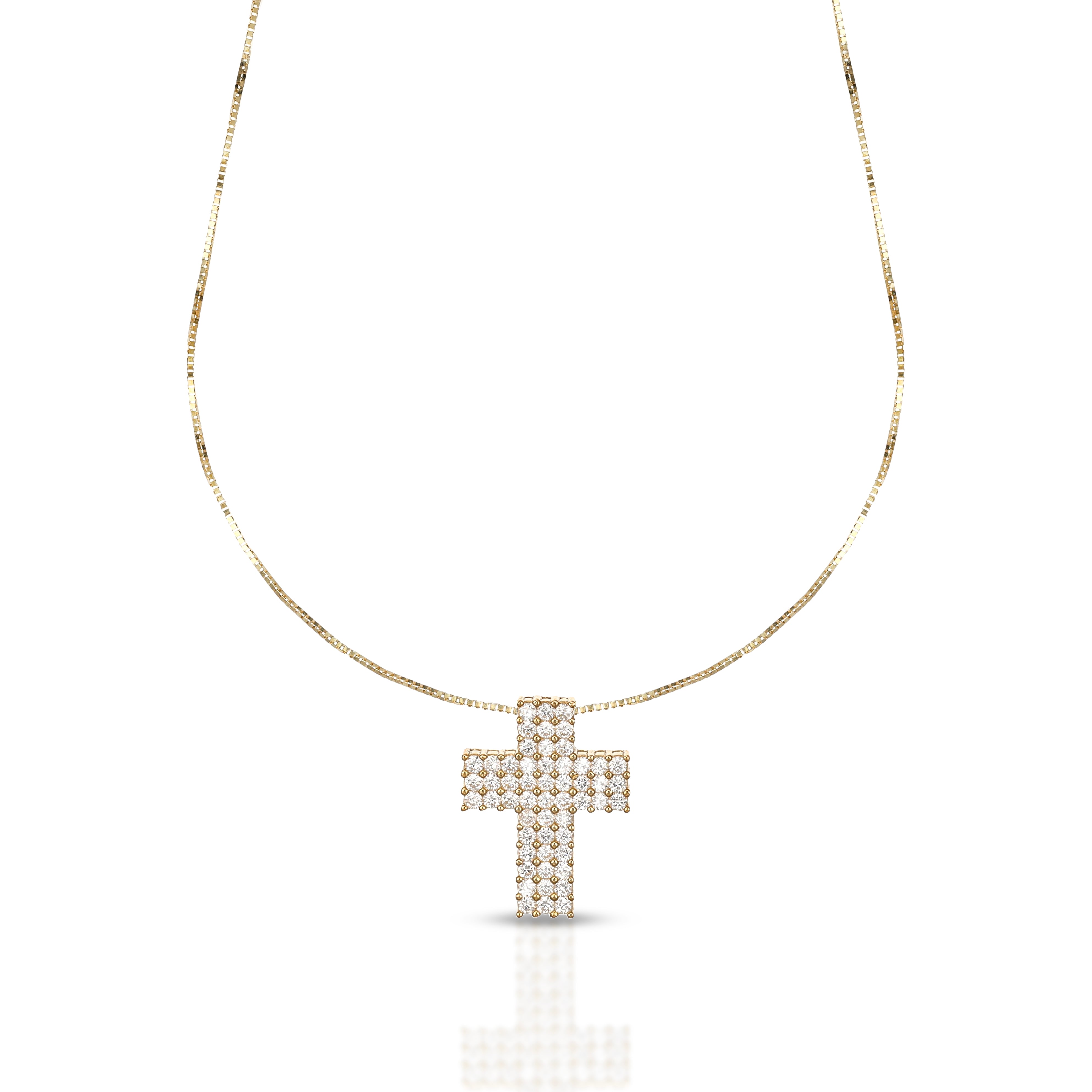 La Collezione Prisma celebra la luce in tutte le sue sfumature, trasformando il classico simbolo della croce in un gioiello contemporaneo e raffinato. Ogni pezzo è realizzato in oro 9 carati e impreziosito da zirconi , che catturano e rifrangono la luce creando giochi scintillanti unici.