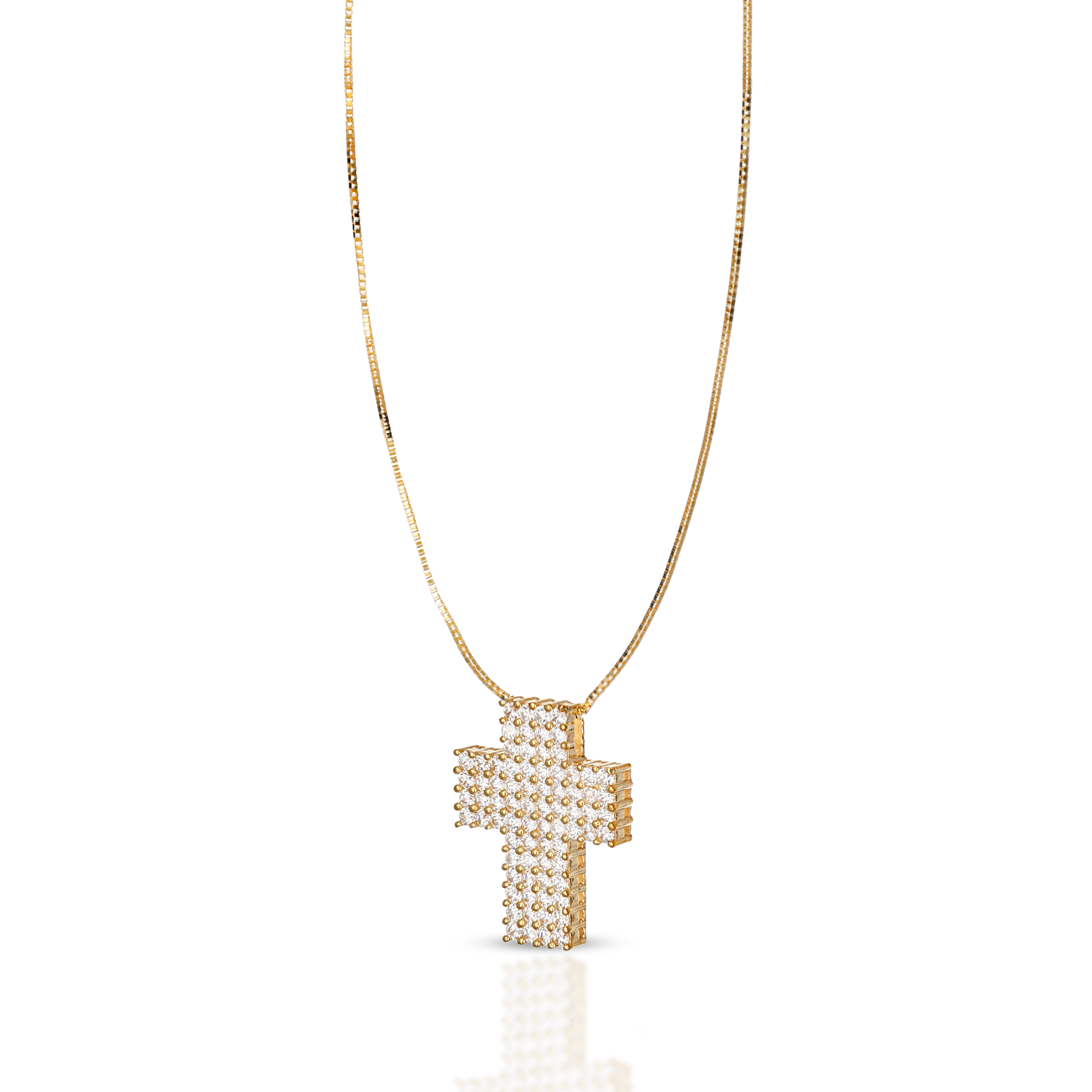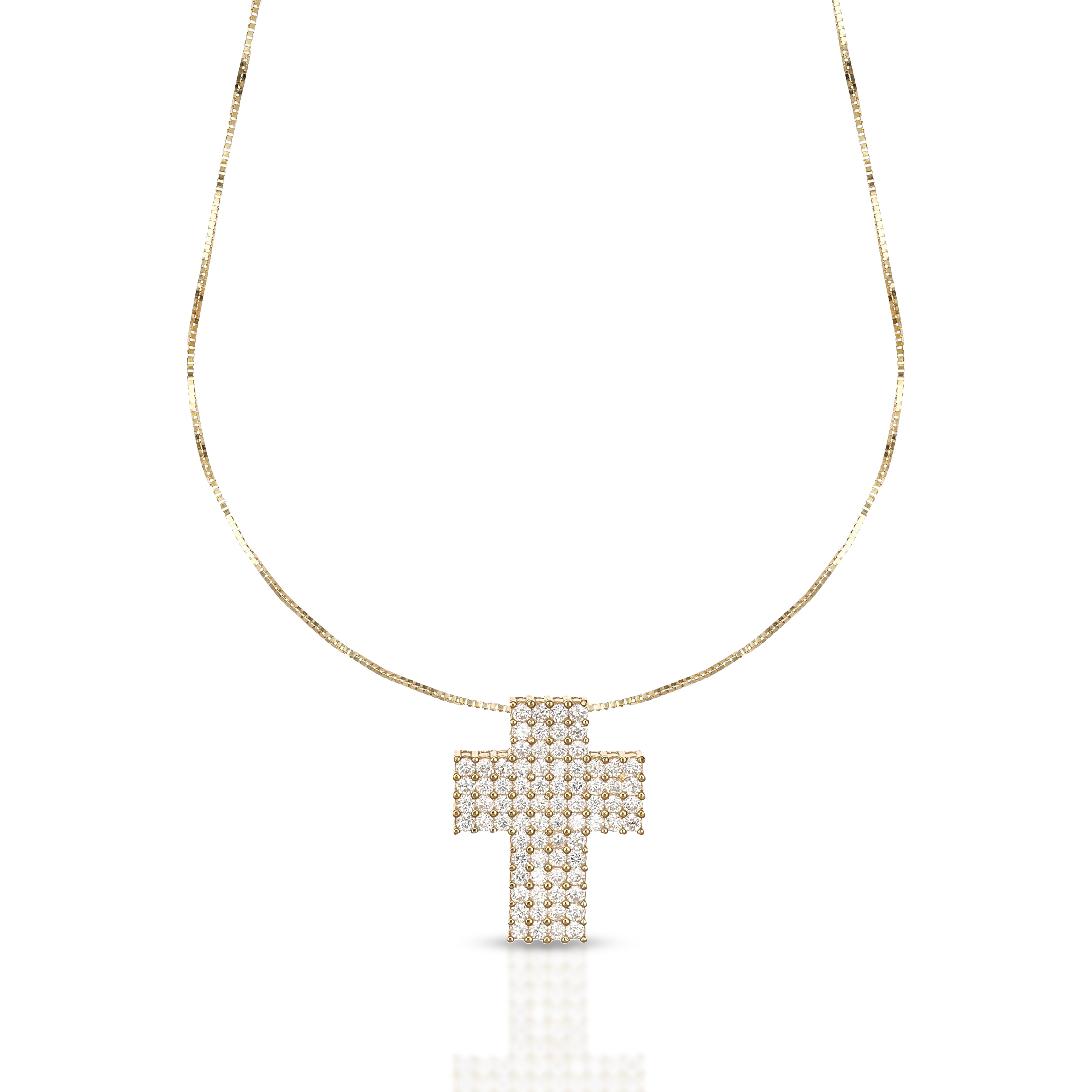 La Collezione Prisma celebra la luce in tutte le sue sfumature, trasformando il classico simbolo della croce in un gioiello contemporaneo e raffinato. Ogni pezzo è realizzato in oro 9 carati e impreziosito da zirconi , che catturano e rifrangono la luce creando giochi scintillanti unici.