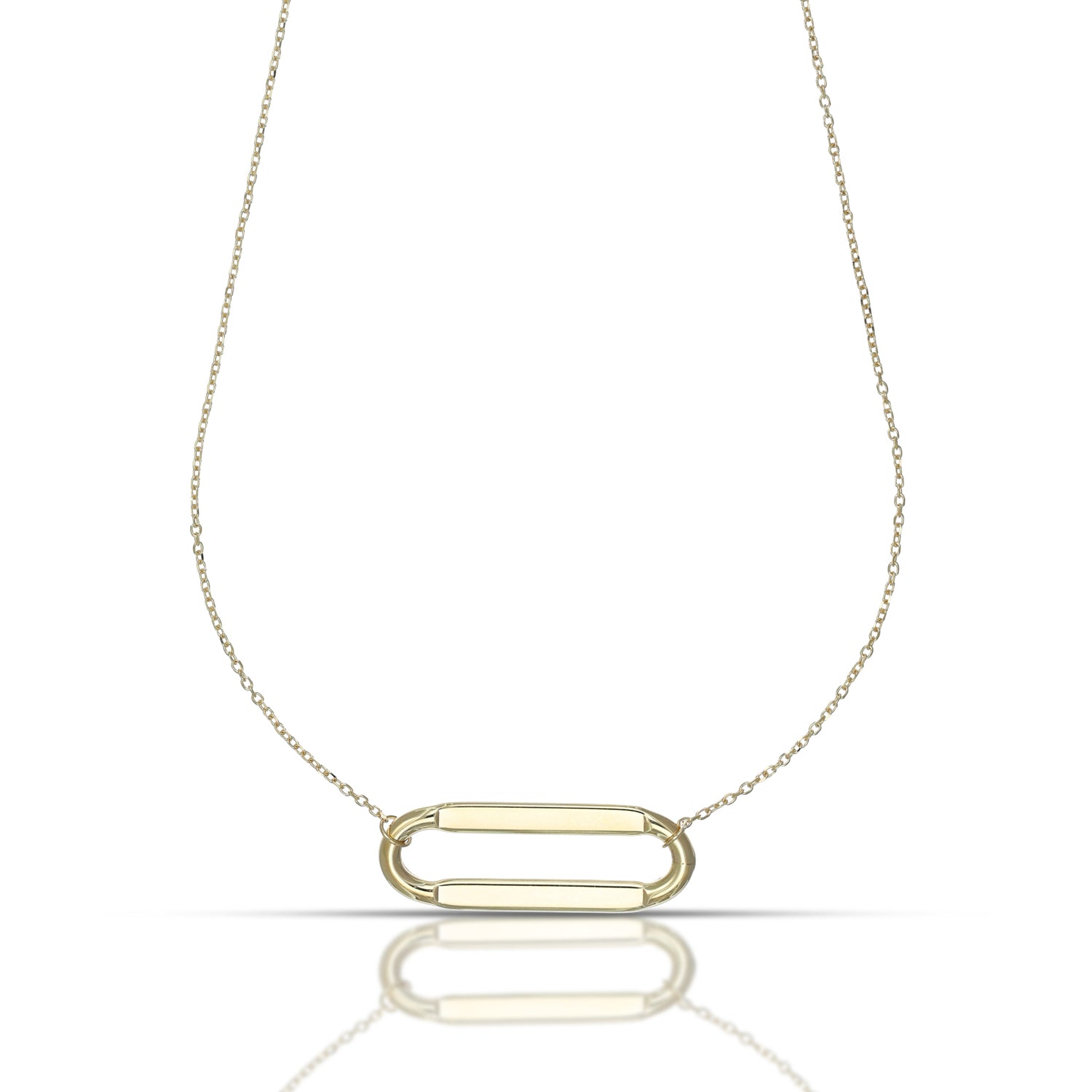 La collana Nòva in Oro 9 Carati è un gioiello semplice e ricco di significato. Al centro della catenina, un ovale allungato e lucido da personalizzare con un’incisione: un piccolo segreto visibile solo a chi lo sa.