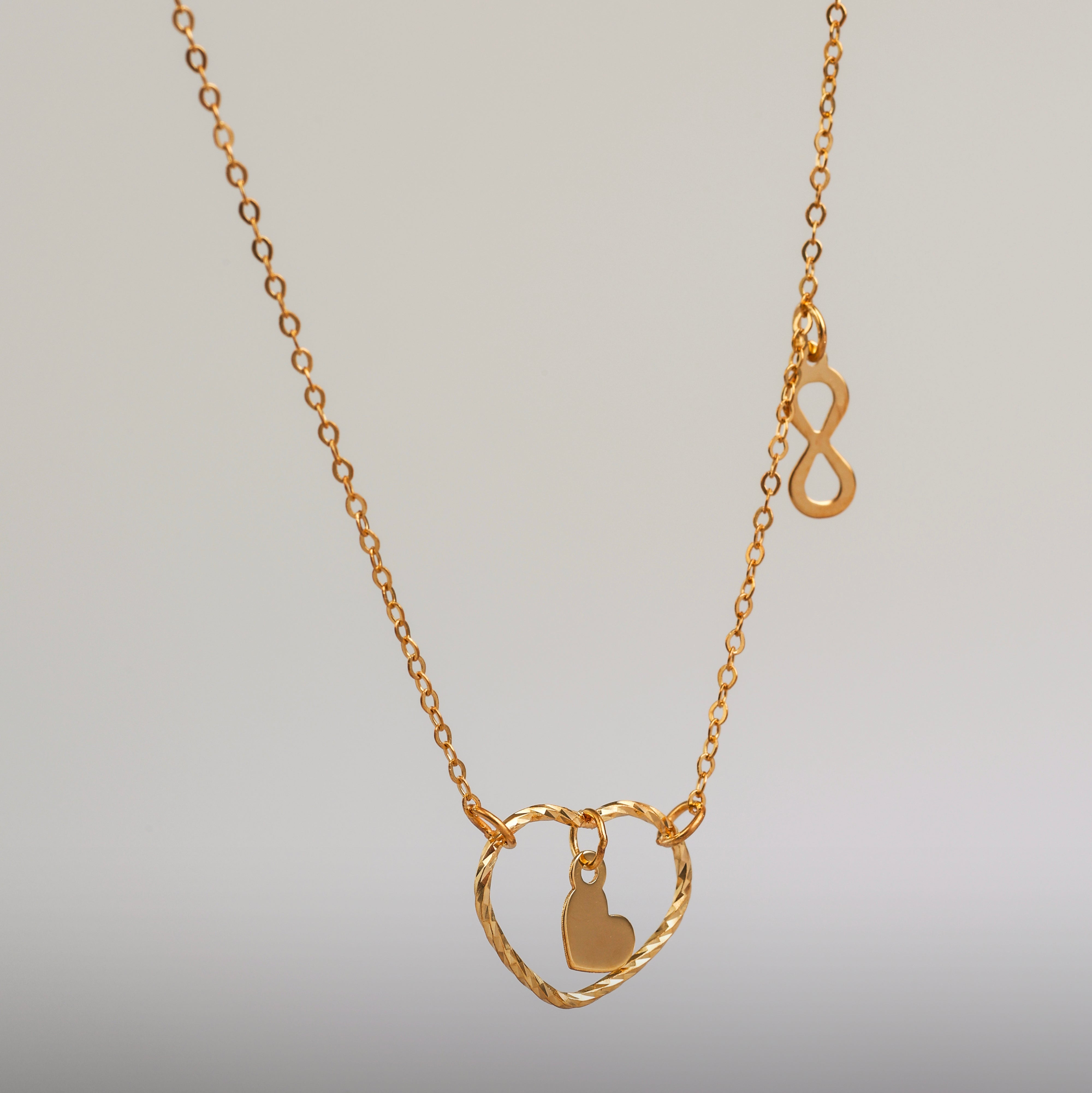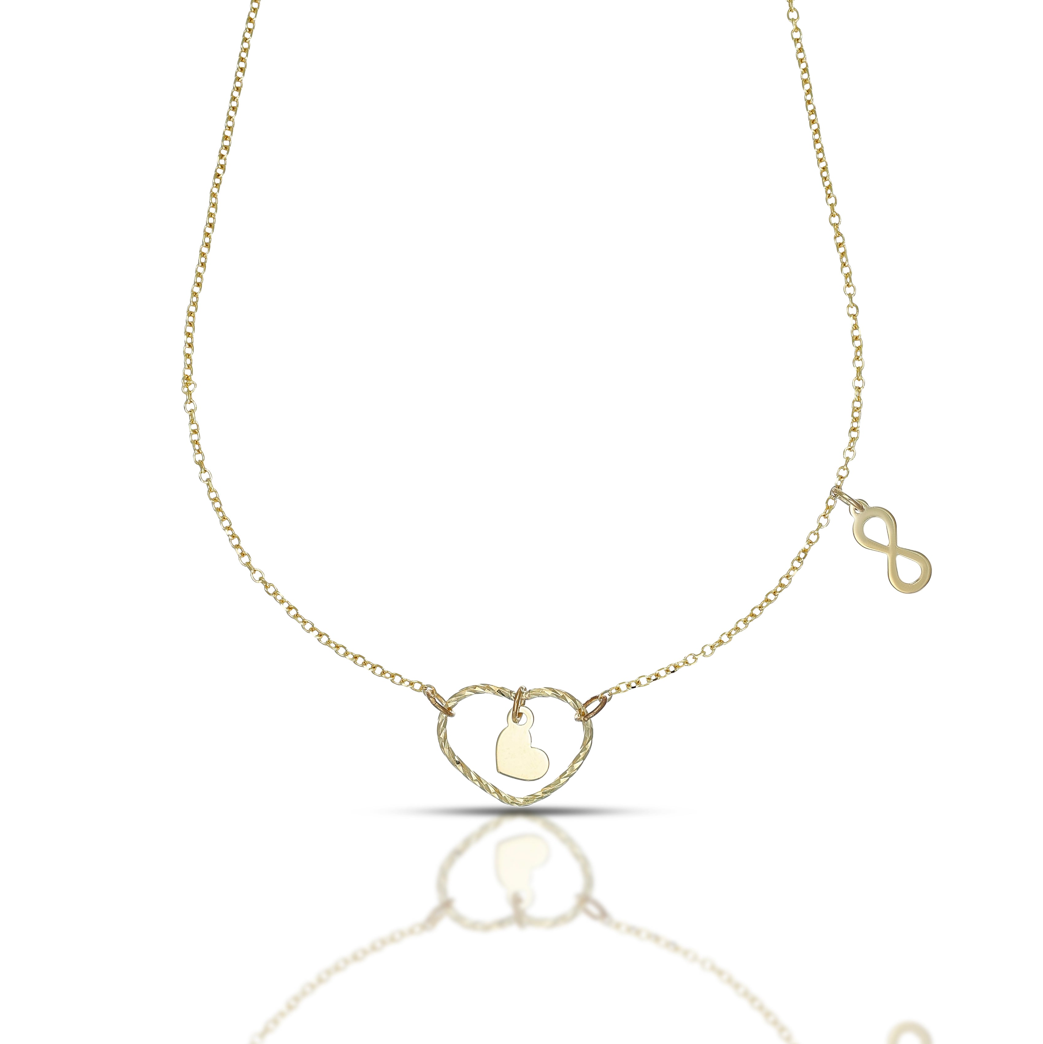 L'Oro 9 Carati, prezioso e luminoso, esalta la bellezza di questi simboli, rendendo la collana perfetta per chi vuole celebrare un legame indissolubile. Un regalo perfetto per ogni occasione speciale, che parla di affetto e di amore senza fine.