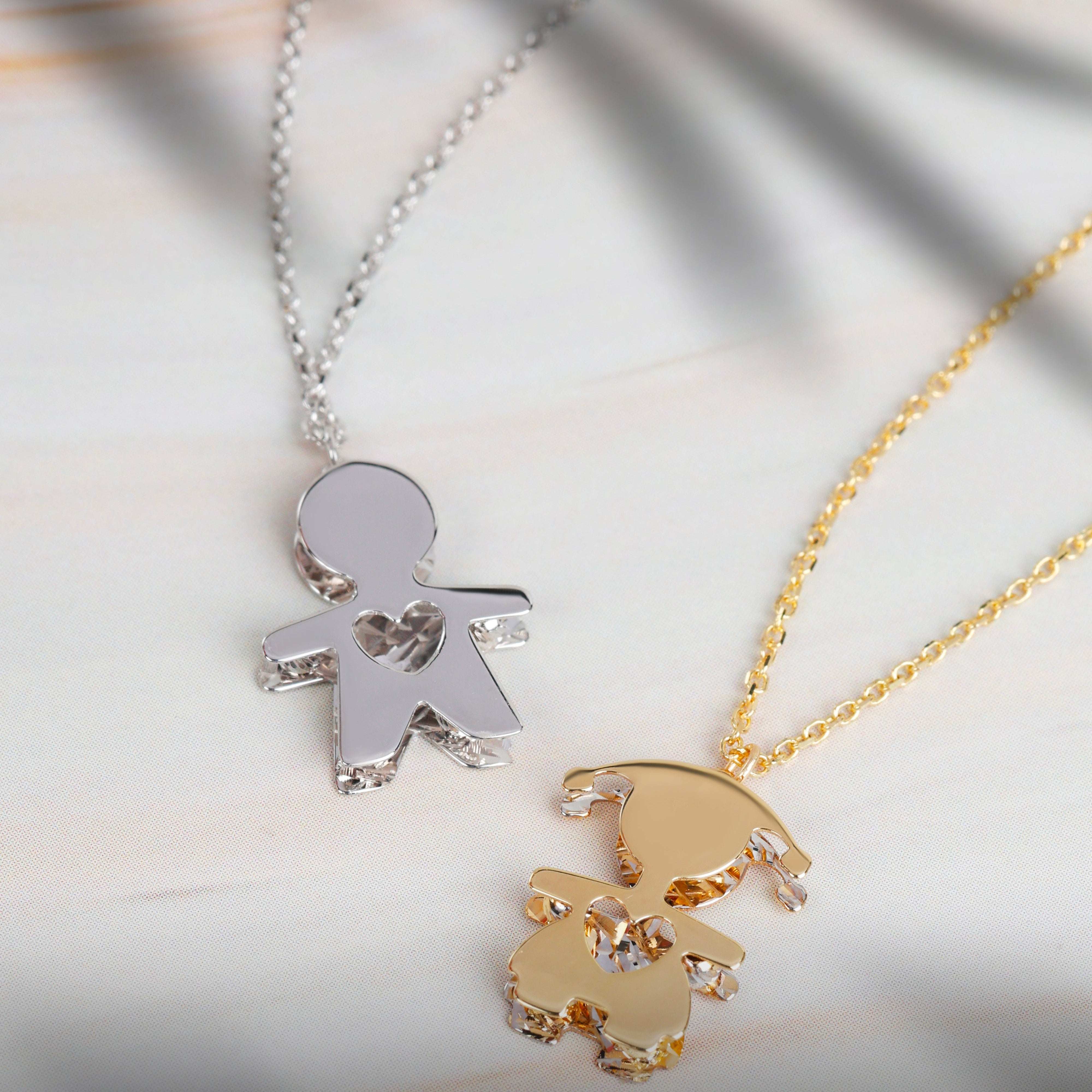 La collana Primi Battiti con ciondolo bebè femminuccia è un omaggio alla dolcezza dei primi giorni e all’amore incondizionato di una mamma.
