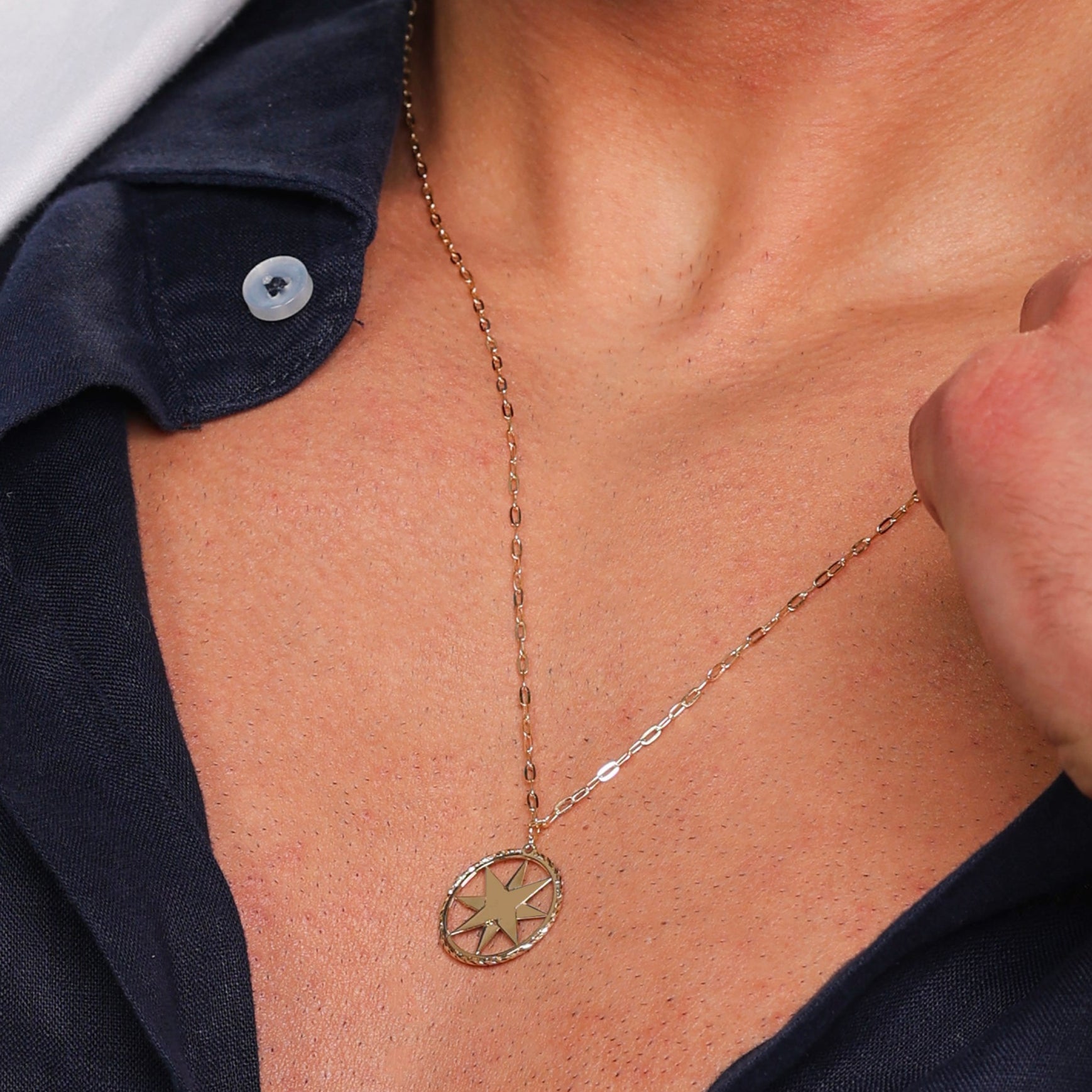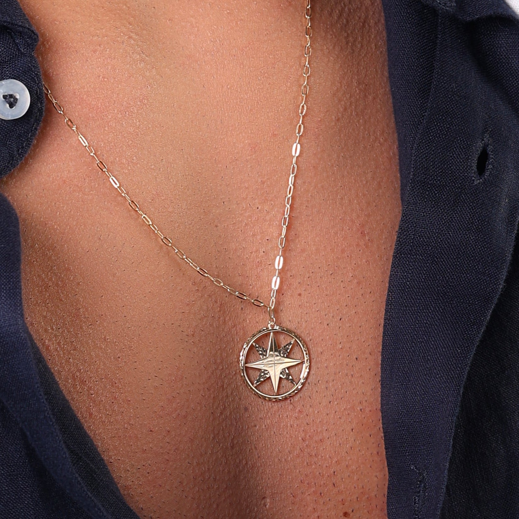 La collana con rosa dei venti della collezione Zephyr è il simbolo dell'orientamento e della ricerca di direzione. Ogni dettaglio, dalla forma alla finitura diamantata, rende questo gioiello una vera e propria bussola personale, pronta a guidare chi lo indossa verso i propri obiettivi. La rosa dei venti, con la sua bellezza intricata, è una dichiarazione di chi sa dove sta andando e ha il coraggio di percorrere il cammino giusto, con determinazione e stile.
