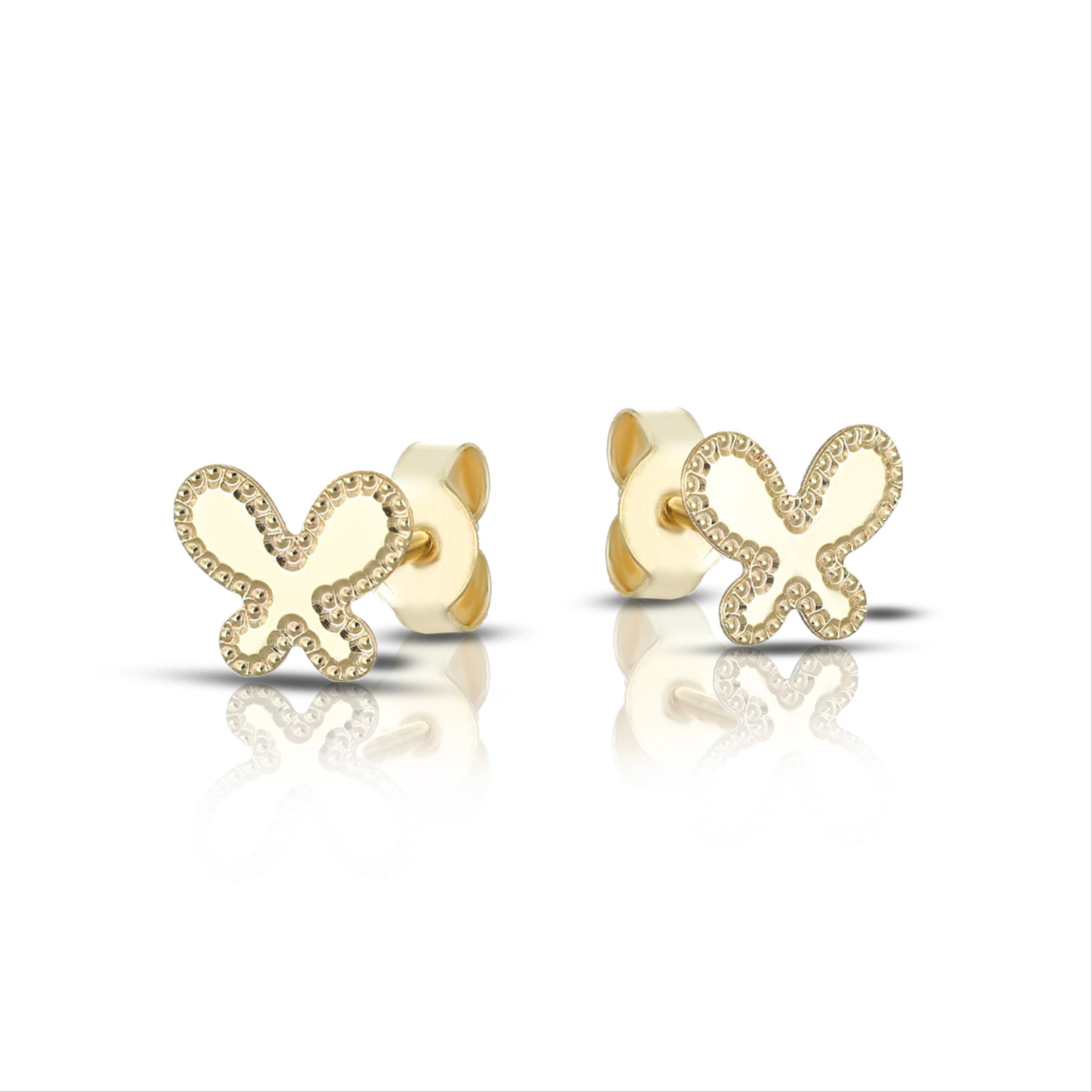 Alla moda fin da piccola! Questo è possibile grazie ai nostri orecchini in Oro 9 Carati con farfalla e bordo diamantato. Il loro design unico crescerà con lei per essere sempre trendy e glamour.